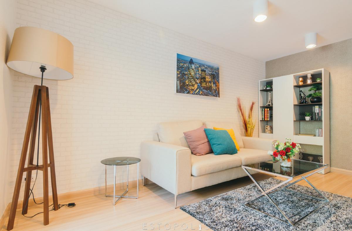 ห้องรับแขกเหมือนเป็นศูนย์กลางของห้อง เชื่อมไปยังส่วนต่างๆ ทั้งห้องนอน ห้องครัว และห้องน้ำ