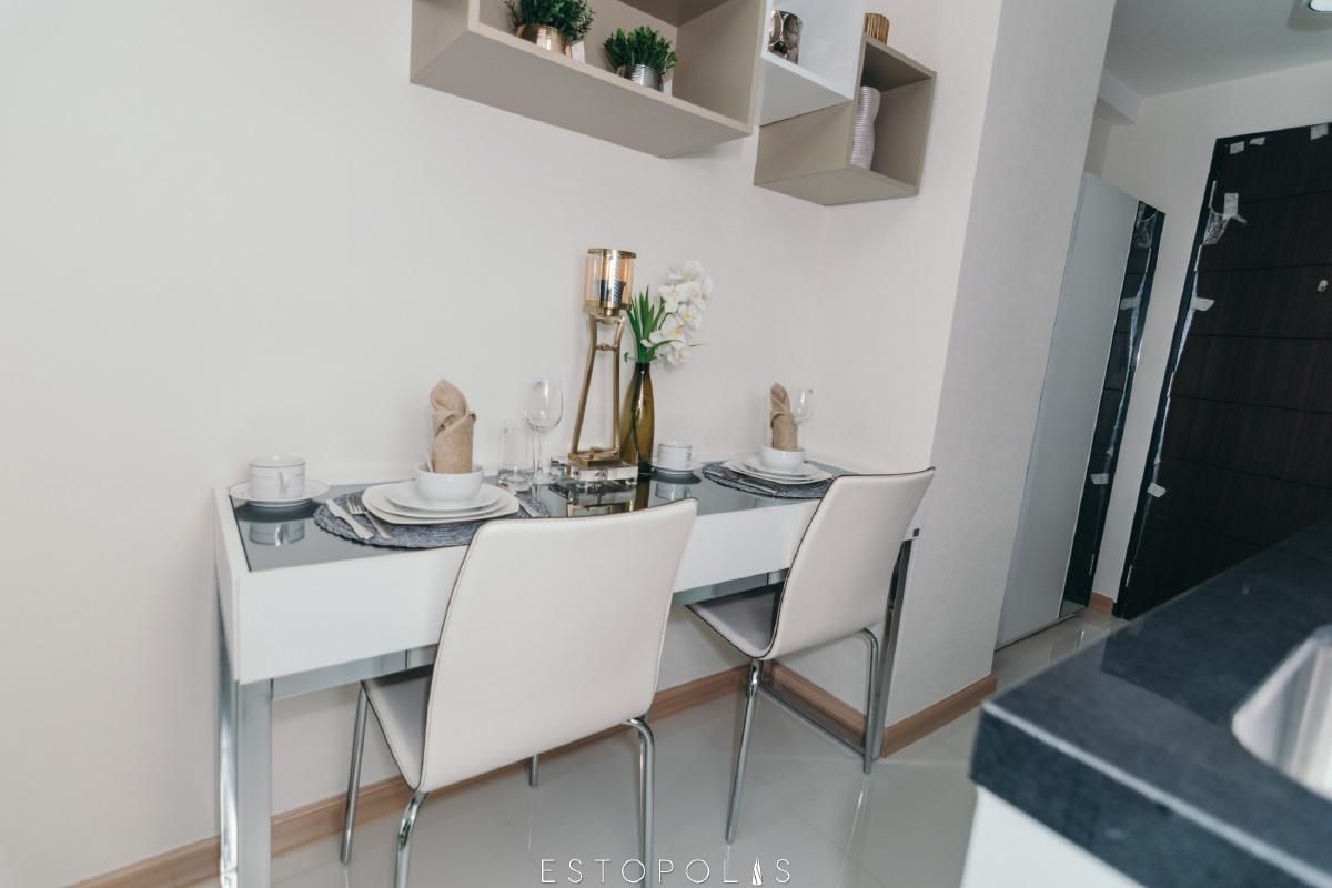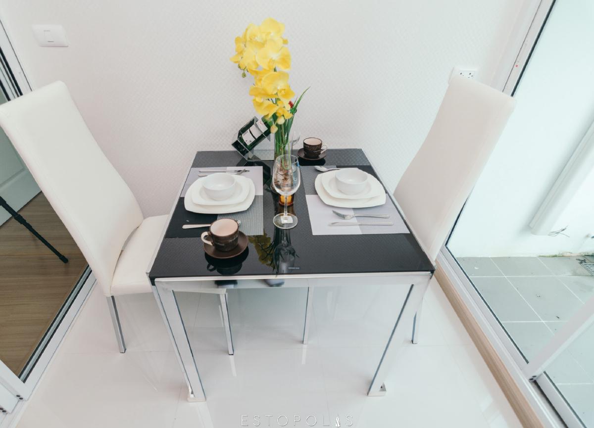 ถัดมาห้องนั่งเล่น ที่มีมุมที่เหมาะสำหรับวางโต๊ะทานอาหารอีกด้วย ซึ่งบริเวณทานอาหาร ทางโครงการจะไม่ได้แถมให้แค่ตกแต่งให้ดูเป็นตัวอย่างเท่านั้น