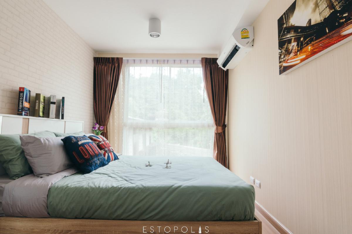 ห้องนอนแรก จะเป็นห้องนอนที่มีขนาดใหญ่กว่าห้องนอนอีกห้อง เหมาะสำหรับนอนสองคน เช่น คู่รัก
