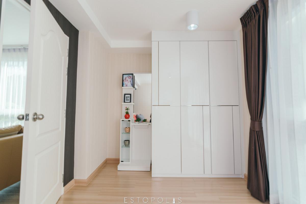 มาดูยูนิตแบบ 1 ห้องนอนกันบ้าง สำหรับยูนิตนี้เป็นยูนิตที่เหมาะสำหรับอยู่ 1-2 คน เพราะมีขนาดที่กระทัดรัดพอดี ไม่อึดอัด เน้นประยุกต์ใช้พื้นที่ที่มี ให้คุ้มค่าที่สุด แต่ว่ายูนิตนี้จะไม่มีระเบียง ซึ่งข้อดีคือ ตัดปัญหาเรื่องนก การทำความสะอาด และการเปลี่ยนหลอดไฟ แต่แนะนำให้มีเครื่องซักผ้าที่สามารถอบผ้าได้ในตัว เพราะยูนิตนี้ไม่มีที่ให้ตากผ้านะครับ