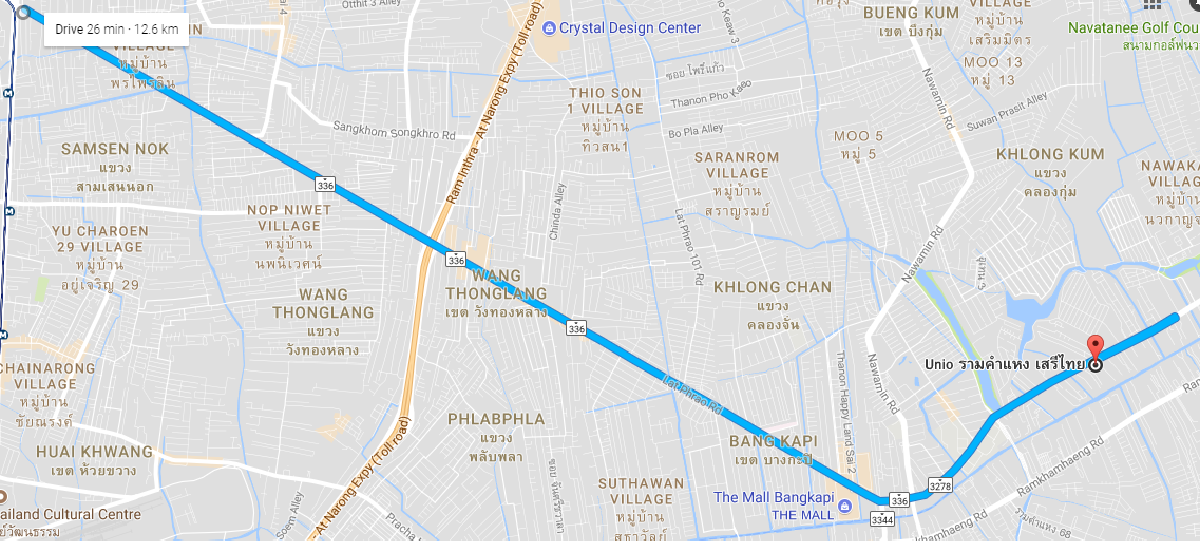โครงการ ยูนิโอ รามคำแหง-เสรีไทย (Unio Ramkhamhaeng – Serithai) ตั้งอยู่ในทำเลอาจจะไกลสำหรับคนที่อยู่ฝั่งกรุงเทพตะวันตก แต่สำหรับคนที่คุ้นเคยกับย่านรามคำแหง บางกะปิ รามอินทรา แน่นอนว่าเสรีไทยเป็นถนนอีกเส้นหนึ่งที่น่าสนใจ เพราะยังไม่ถึงแยกลำสาลีที่ขึ้นชื่อเรื่องการจราจร ใครที่ใช้เรือในการเดินทางก็ใกล้กับท่าเรือตรงนิด้าซึ่งเป็นท่าต้นทาง อีกอย่างในอนาตเส้นรามคำแหงที่คู่ขนานกับเสรีไทยก็จะมีรถไฟฟ้าสายสีส้มขึ้น ทำให้คนที่ต้องการเข้าเมืองด้วยรถไฟฟ้ามีตัวเลือกเพิ่มขึ้นอีก
