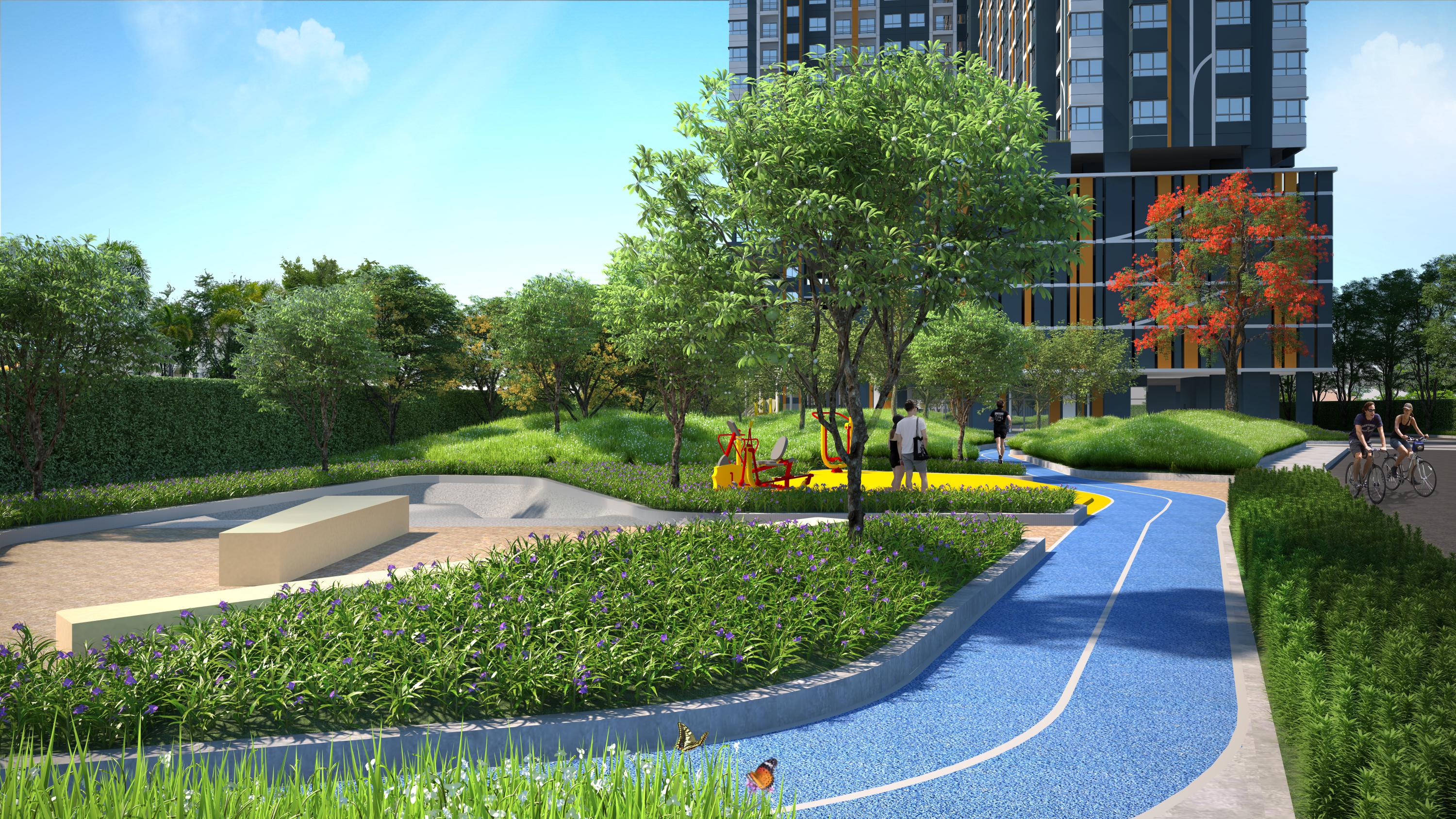 เล่นกีฬากันเสร็จแล้วก็หันมาเดินเล่นชิลล์ๆ กันรอบๆ สวน ซึ่งทางโครงการจะมี Jogging Track เอาไว้ให้เดินออกกำลังกาย หรือใครจะวิ่งจ็อกกิ้งรับลมตอนเย็นก็ได้เช่นกัน ส่วนพื้นที่ตรงกลางเป็นลานกิจกรรมไว้สำหรับทำกิจกรรมต่างๆ ที่ตนเองสนใจ