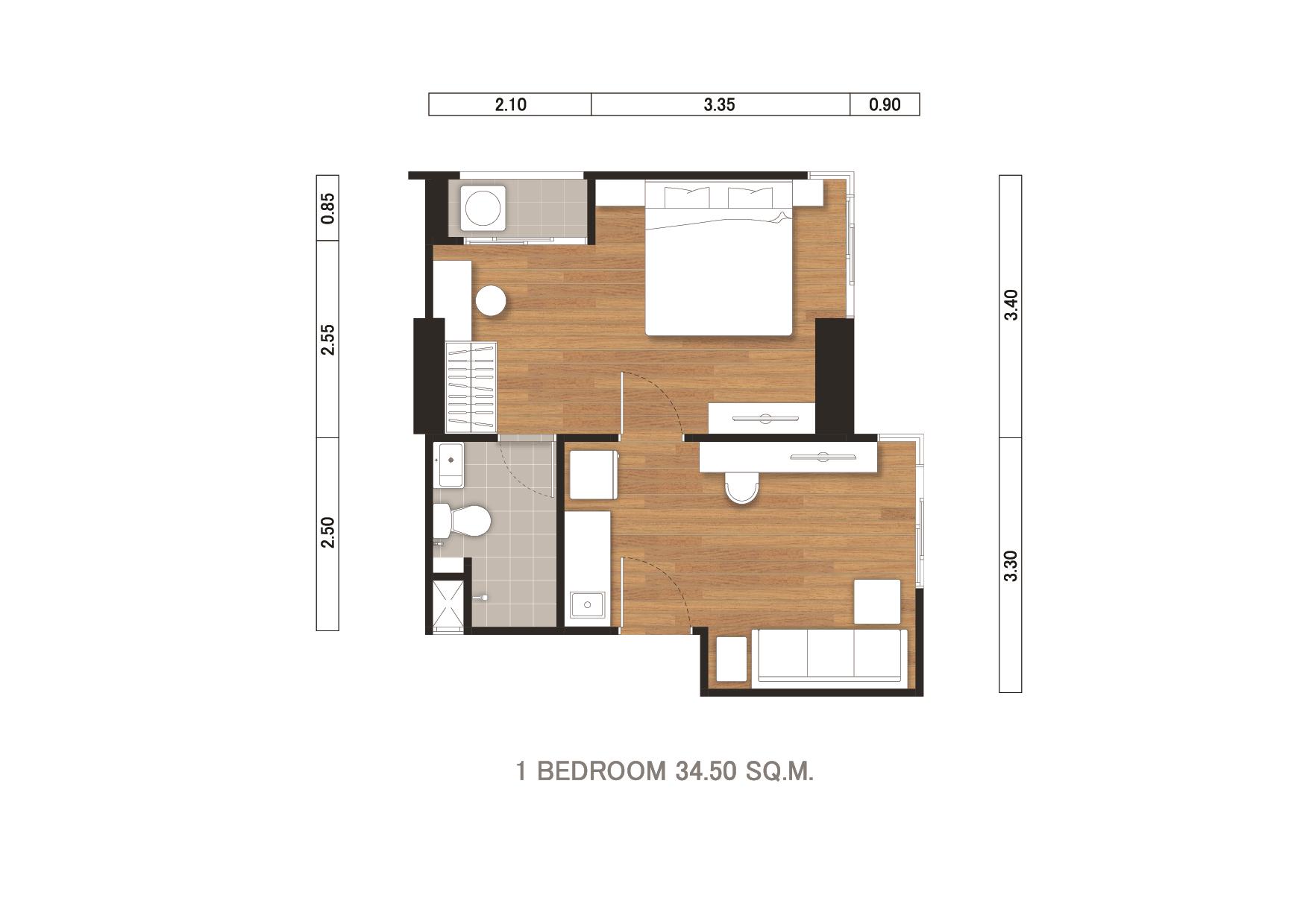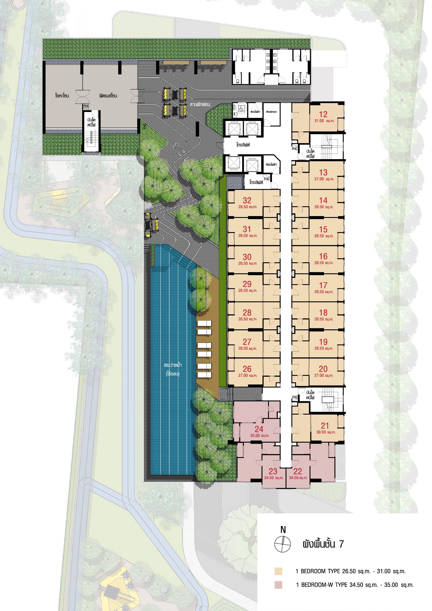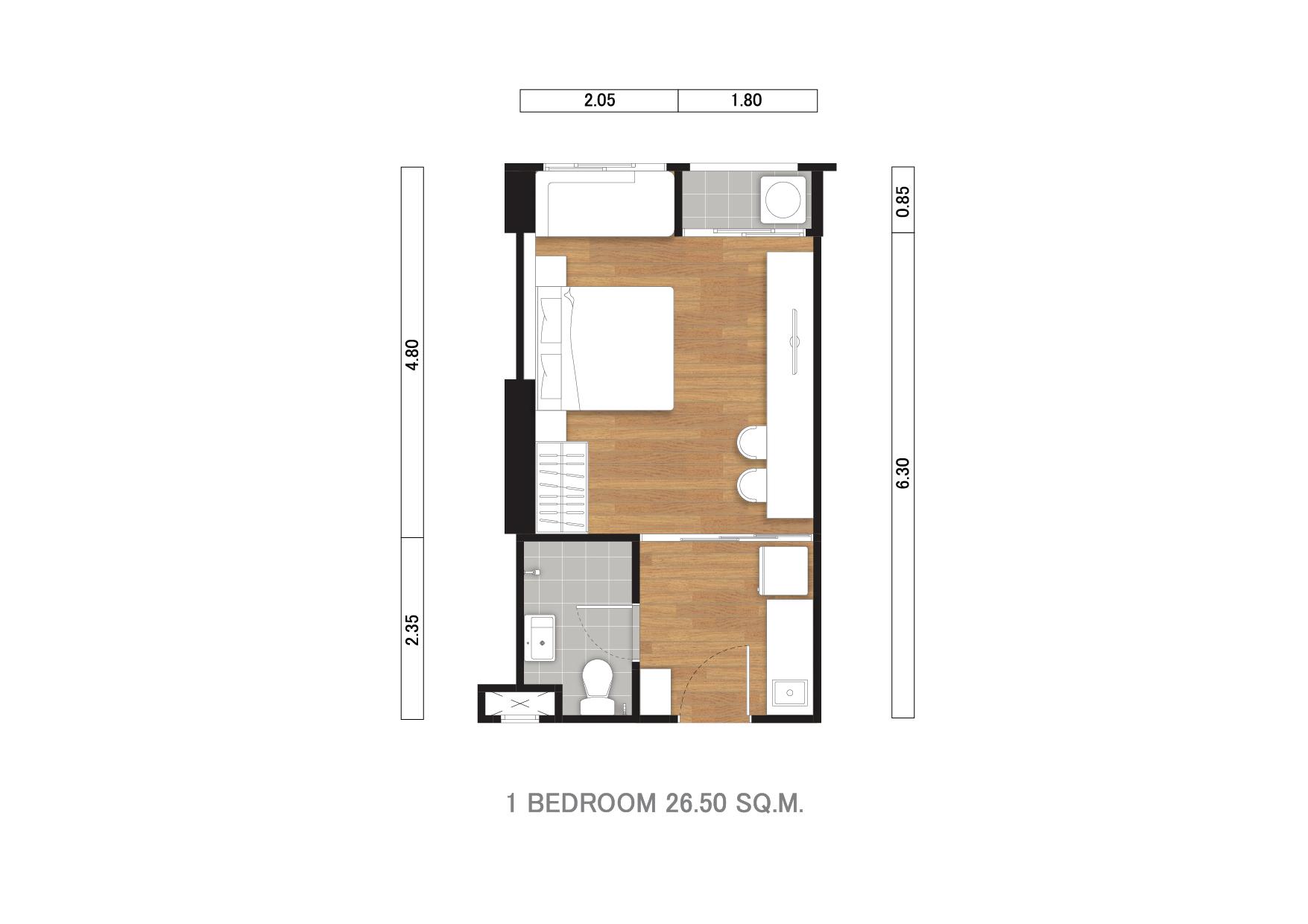 - แบบห้อง : Type 1 Bedroom พื้นที่ใช้สอย 26.50 - 36.50 ตารางเมตร