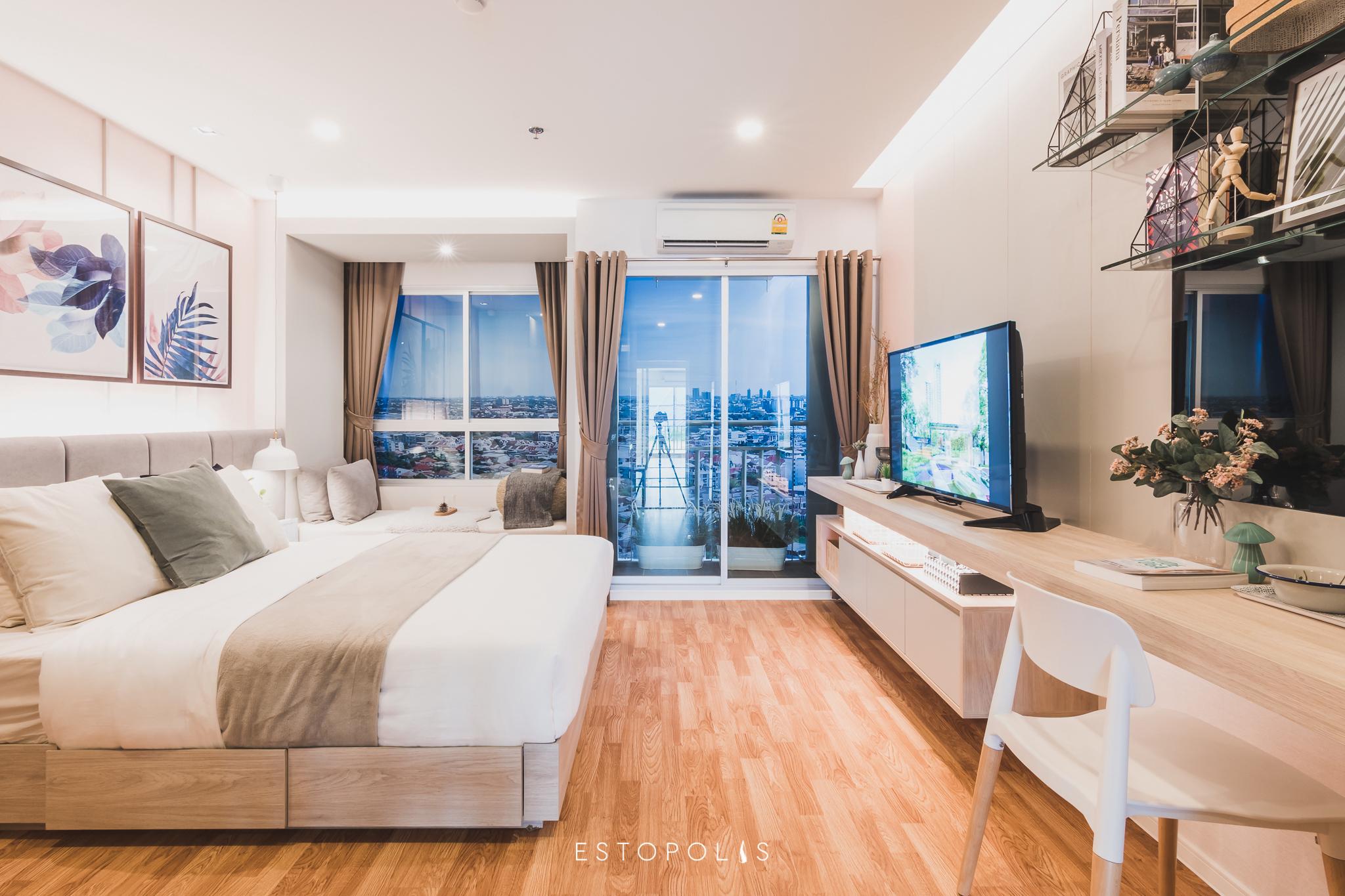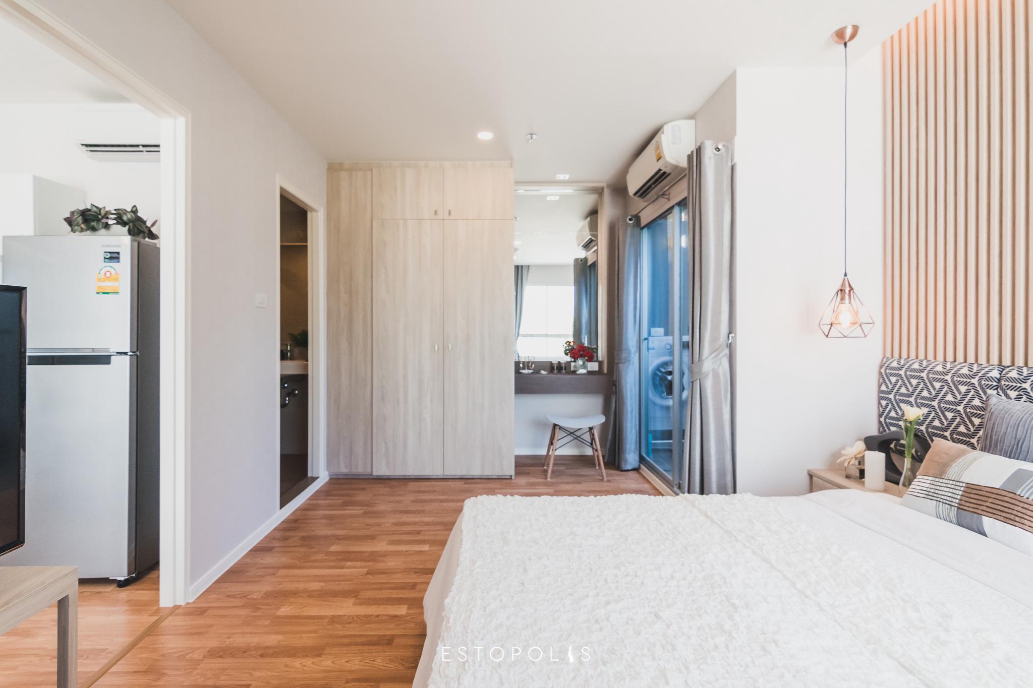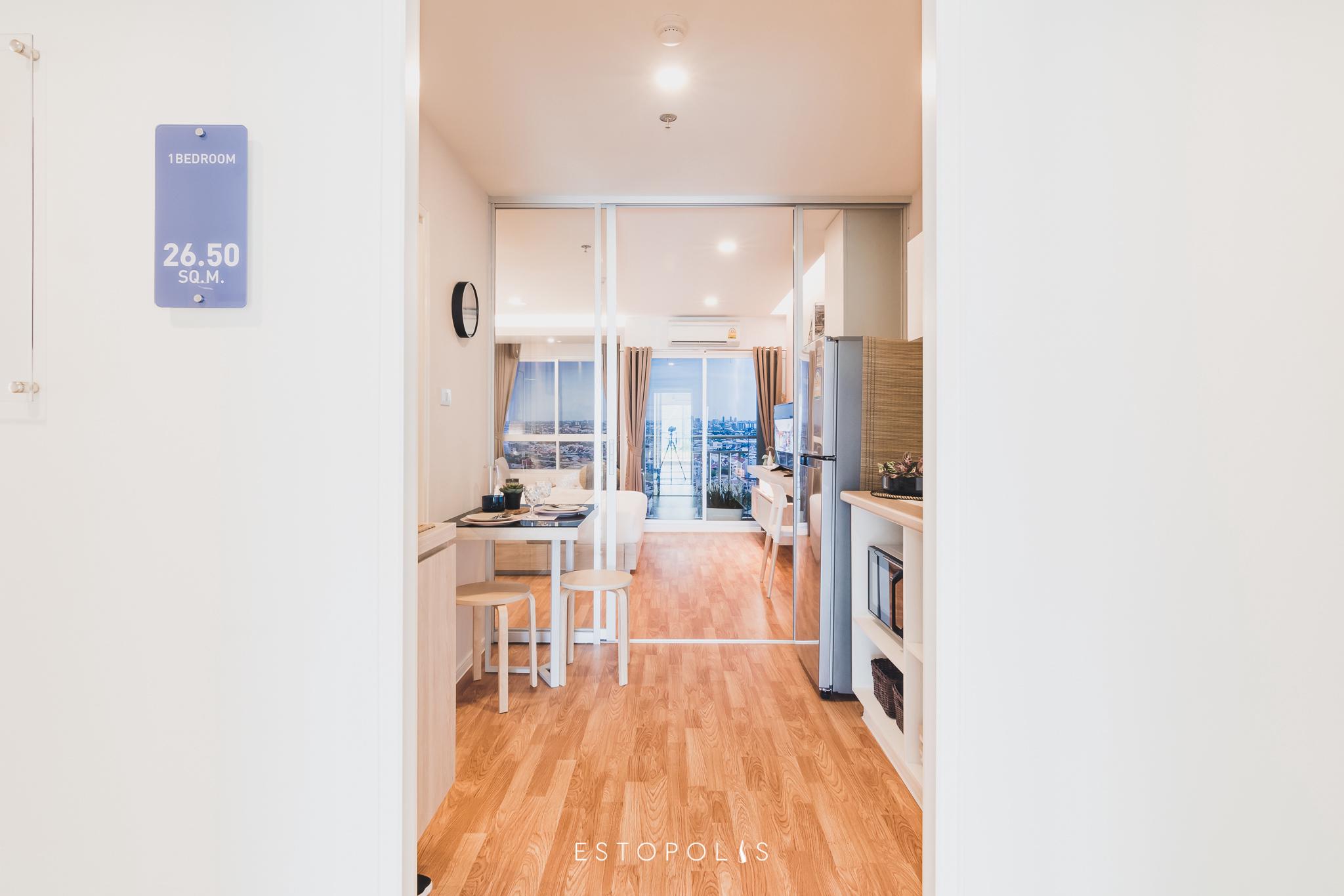 ห้องแรกที่ Estopolis จะพาไปสำรวจกันในวันนี้จะเป็นห้อง 1 Bedroom ซึ่งมีพื้นที่ใช้สอย 26.50 ตารางเมตร ซึ่งเป็นห้องที่มีจำนวนมากที่สุดในโครงการ ภายในมีการจัดสรรพื้นที่ให้พอดีกับความต้องการของผู้พักอาศัย ใครที่อยากได้คอนโดสำหรับใช้พักผ่อนในวันทำงาน หรืออยากซื้อไว้เพื่อลงทุนปล่อยเช่าก็ถือว่าเหมาะมากทีเดียว