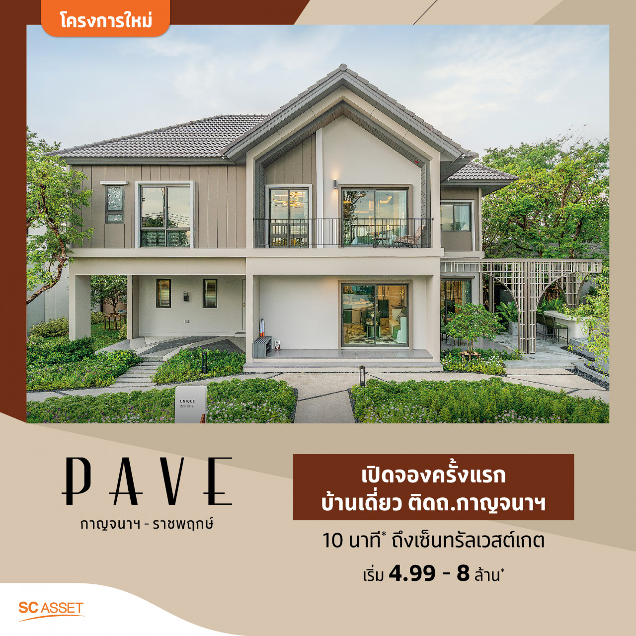 โครงการใหม่ ‘บ้านเดี่ยว’ PAVE กาญจนา-ราชพฤกษ์ เริ่ม 𝟰.𝟵𝟵 - 𝟴 ล้าน* 𝟭𝟱 - 𝟭𝟲 มิ.ย. เปิดจองครั้งแรก ติดถ.กาญจนาฯ เพียง 10 นาที* ถึงเซ็นทรัลเวสต์เกต, 15 นาที* ถึง รร.นานาชาติ DBS ราชพฤกษ์ ลงทะเบียนรับส่วนลด 100,000 บาท : https://m.scasset.com/M7Vk