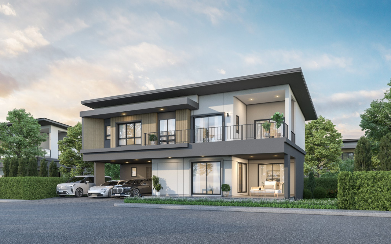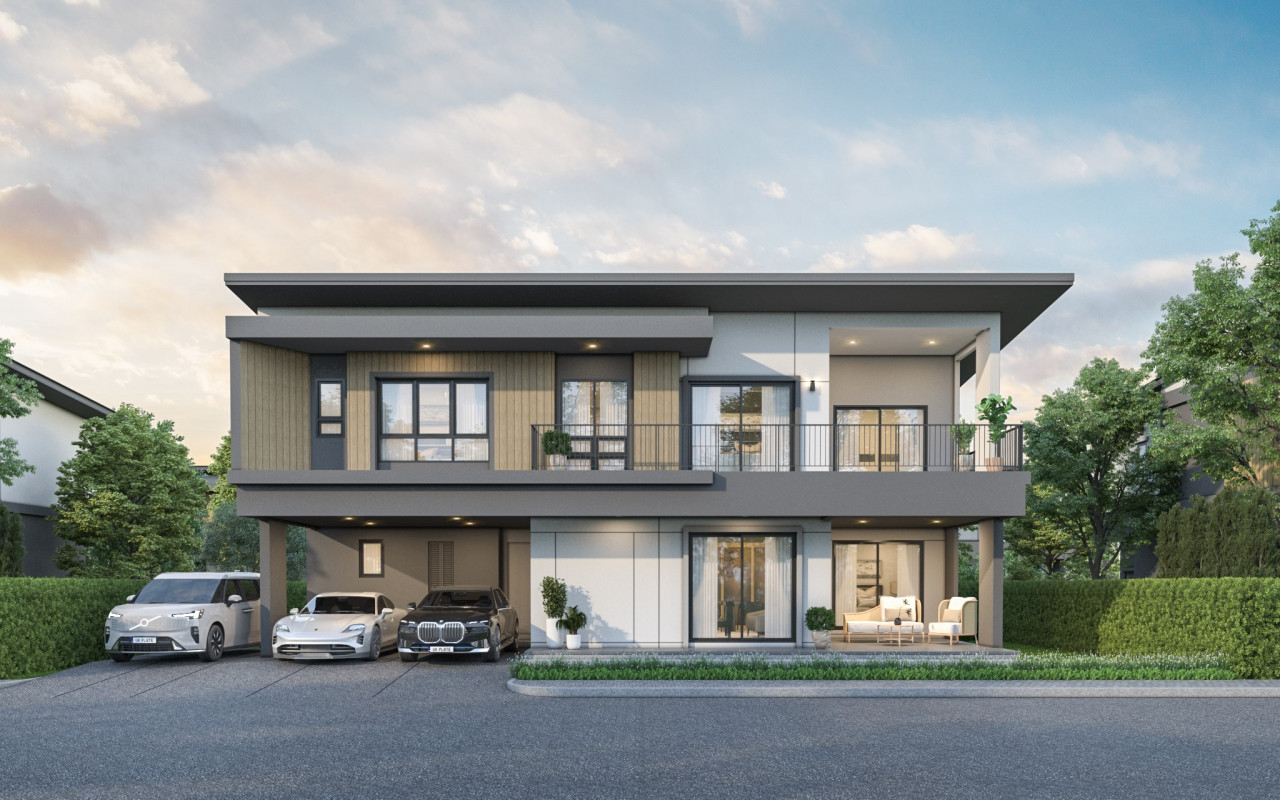 2. แบบบ้าน Mellow (The Edition) พื้นที่ใช้สอย 216 ตร.ม. ที่ดินเริ่มต้น 55.1 ตร.วา 4 ห้องนอน 3 ห้องน้ำ 1 ครัว 2 ที่จอดรถ