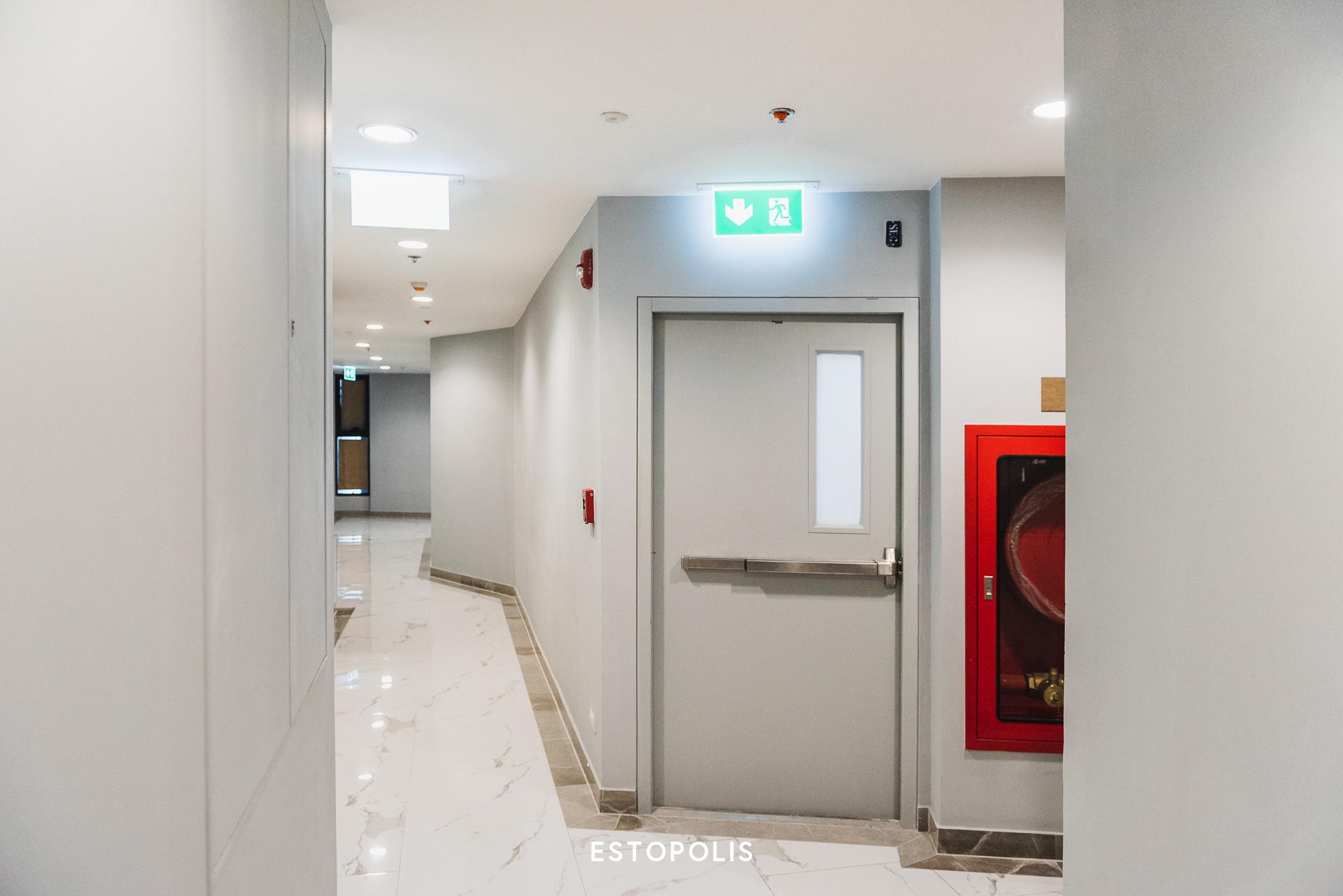 หากเกิดเหตุการณ์ฉุกเฉินก็สามารถใช้งานทางหนีไฟได้สะดวก เพราะทุกๆ ชั้นจะมีป้ายไฟบอกทางออกฉุกเฉินและบันไดหนีไฟอยู่บริเวณกลางอาคาร