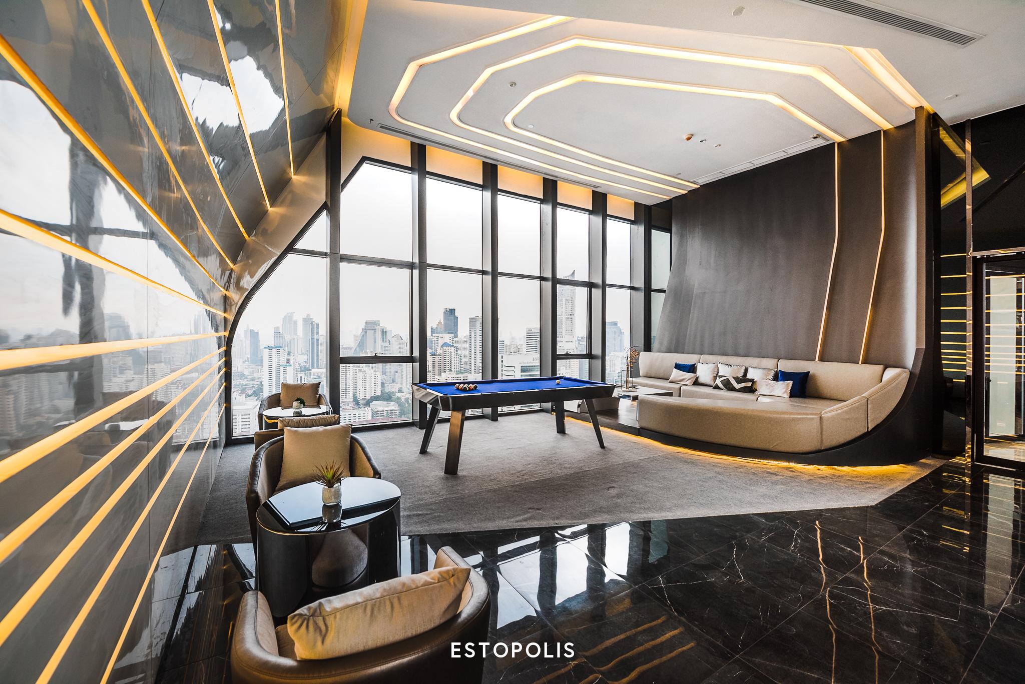 มาถึงส่วนสุดท้ายอย่าง Sky Lounge ขนาดใหญ่ ที่มีมุมนั่งเล่นพร้อม Pool Table และบาร์สำหรับจัดปาร์ตี้ให้ลูกบ้านทุกคนได้ขึ้นมา Hang Out ใช้เวลาว่างร่วมกันได้