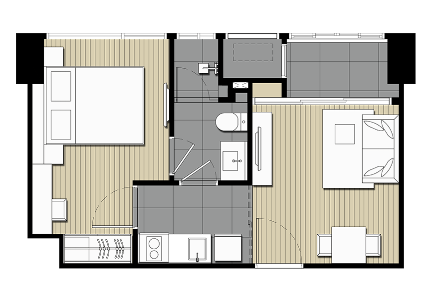- ห้อง Studio ขนาด 26.00 ตร.ม. 2 ยูนิต