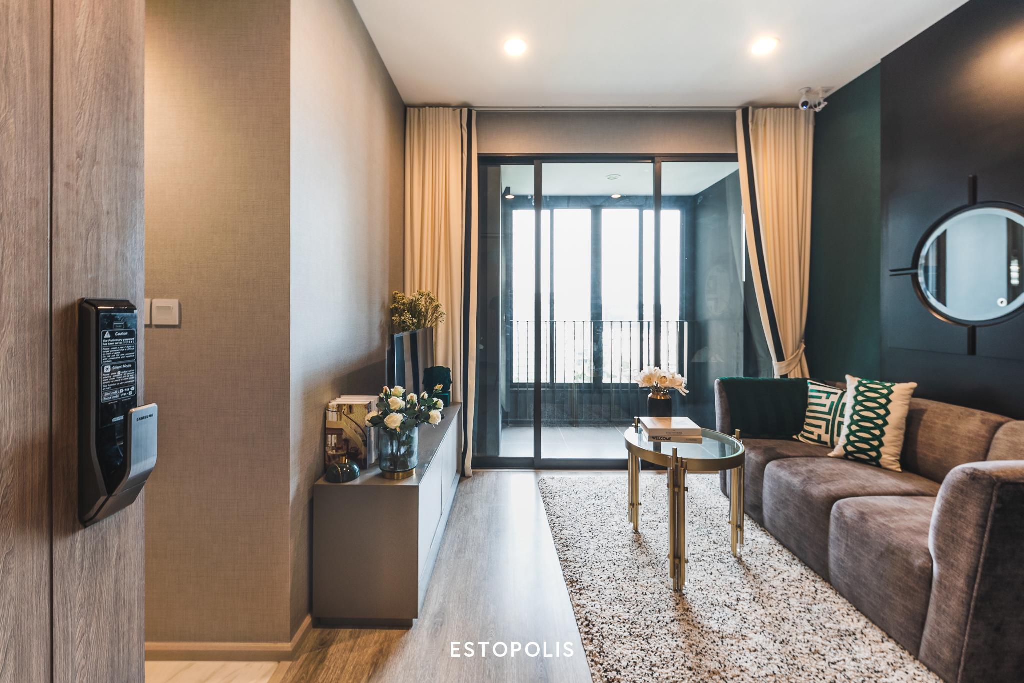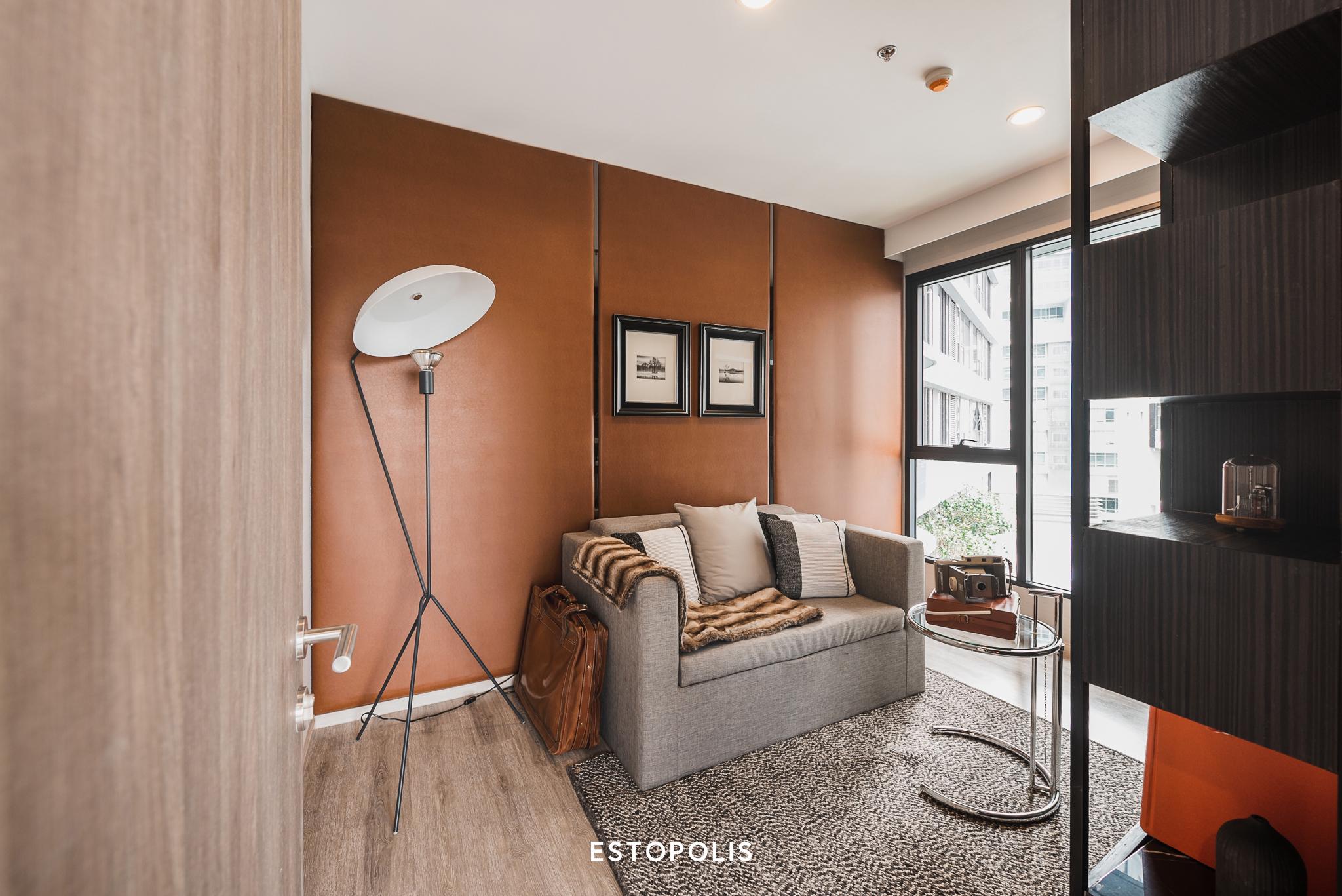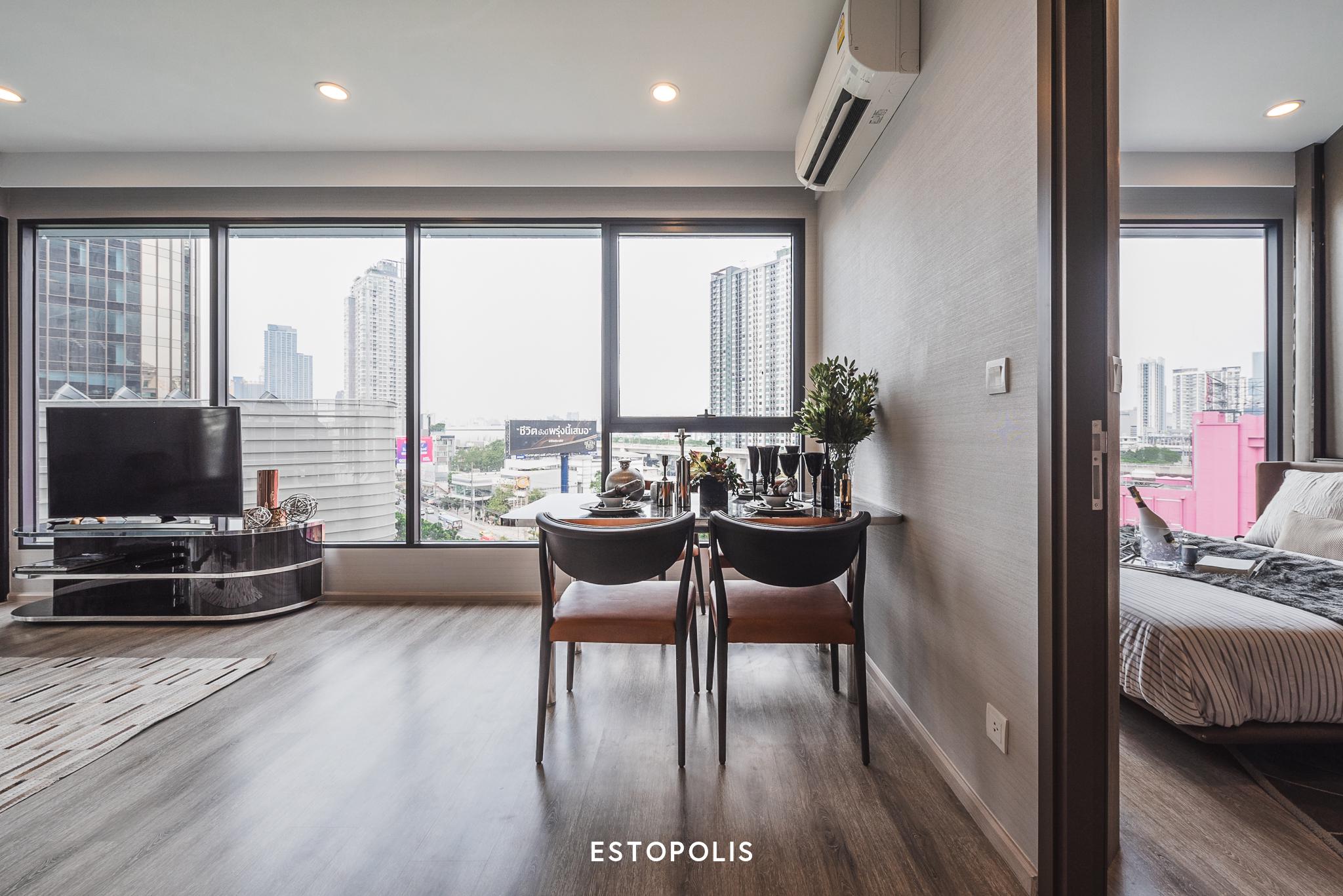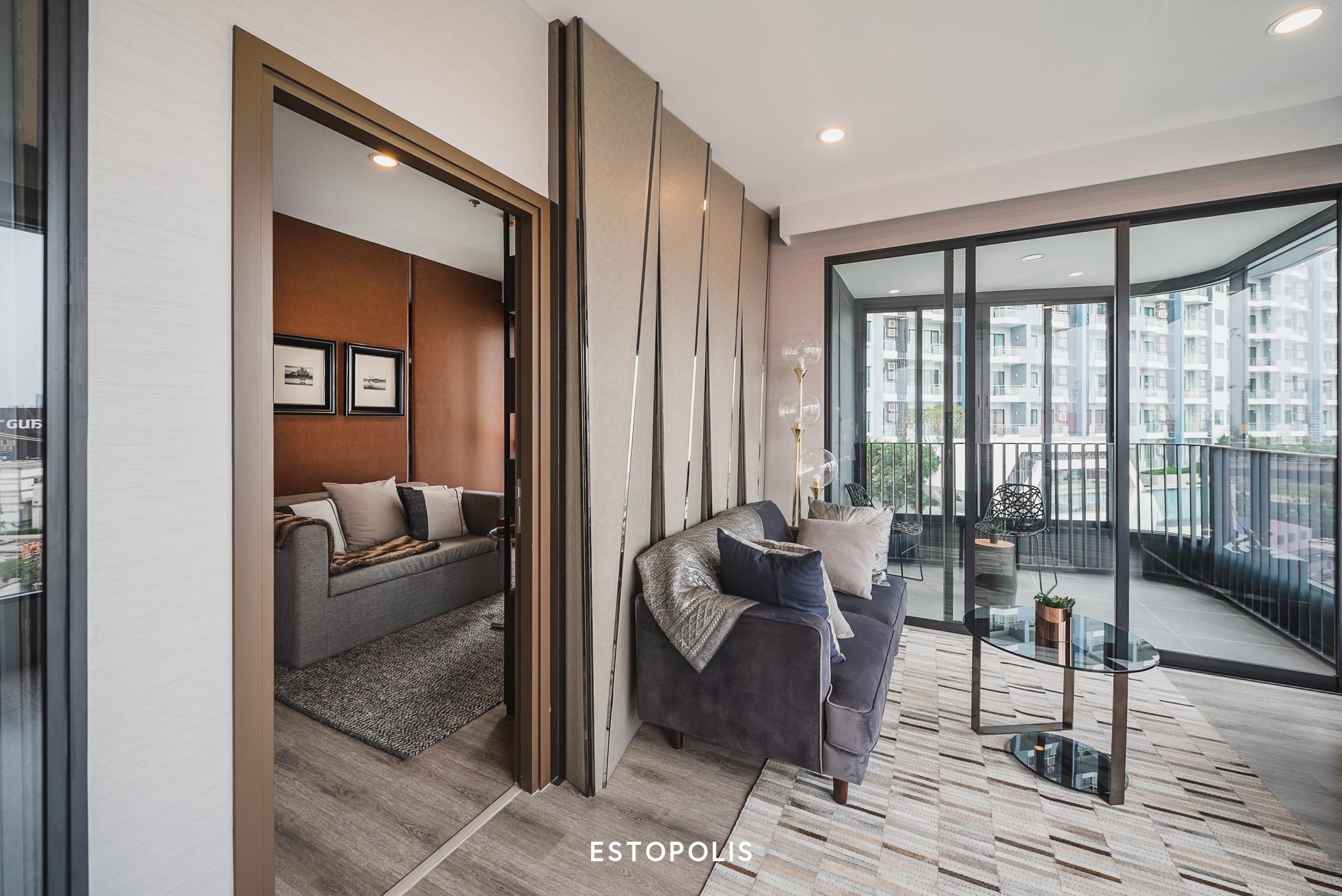 บรรยากาศในห้องก็สำคัญ IDEO Mobi Asoke - (ไอดีโอ โมบิ อโศก) จึงออกแบบให้ห้องนั่งเล่นเชื่อมกับระเบียง เพื่อเพิ่มความสว่างยามพักผ่อน ประตูที่ใช้เป็นแบบกระจกใสบานเลื่อน 3 ตอน เปิดออกได้กว้าง