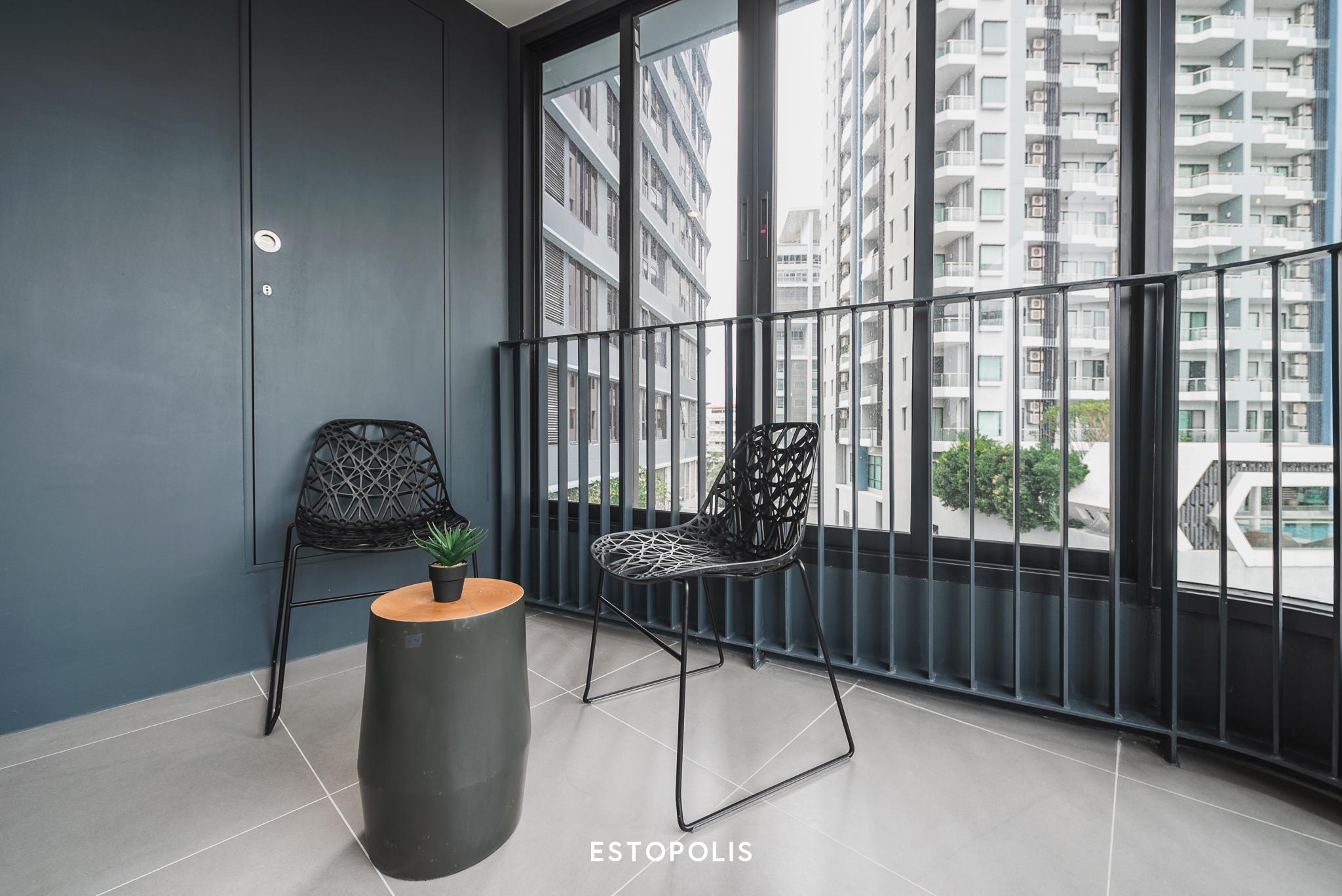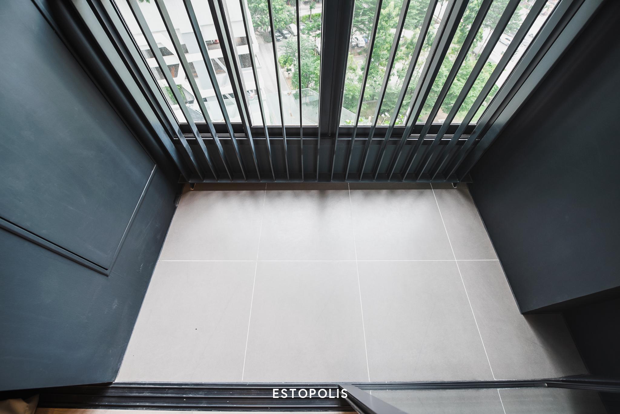 และระเบียงห้องนี้ยังเหมาะที่จะวางโต๊ะกาแฟ หรือตกแต่งเป็นมุมอ่านหนังสือชิลล์ๆ มีบานประตูกระจกให้เปิดออกไปรับลมธรรมชาติ หรือเลือกปิดประตูด้านนอกแล้วเลื่อนเปิดประตูฝั่งห้องนั่งเล่นแทนก็ยังได้ ไม่ว่าเราจะชอบไลฟ์สไตล์แบบไหน IDEO Mobi Asoke - (ไอดีโอ โมบิ อโศก) ก็ตอบโจทย์ชีวิตสมาร์ทได้ครบ