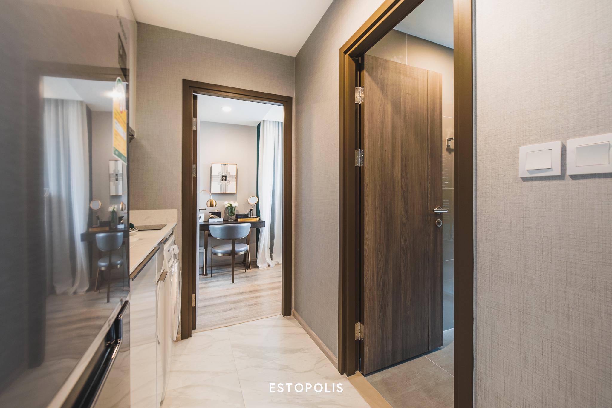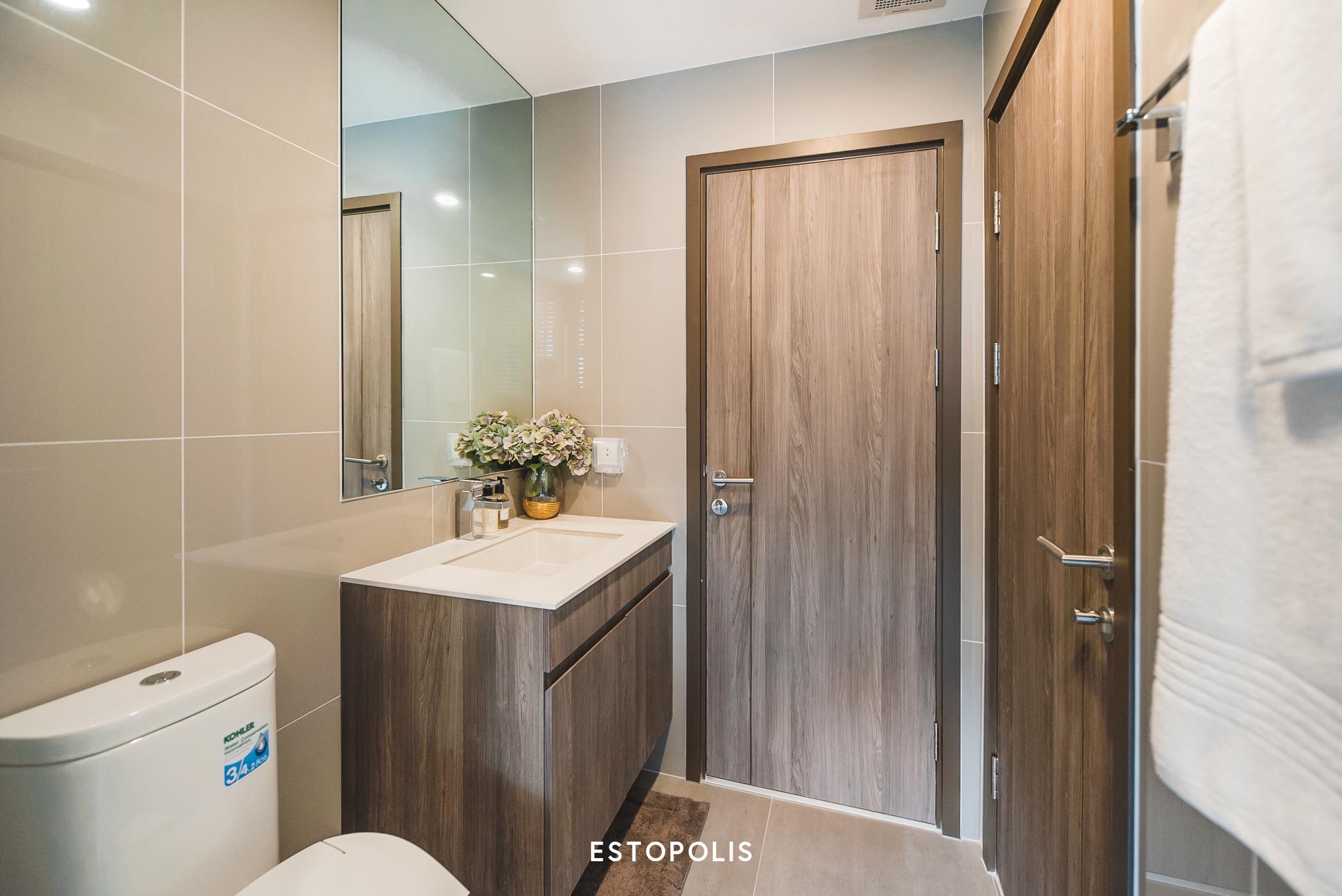เมื่อหันไปทางขวามือของประตูห้อง เราก็จะเจอทางเข้าห้องน้ำที่เชื่อมออกไปยังห้อง Master Bedroom ได้ นับว่า IDEO Mobi Asoke - (ไอดีโอ โมบิ อโศก) ได้ออกแบบพื้นที่ชีวิตให้ง่ายต่อการใช้งานจริง