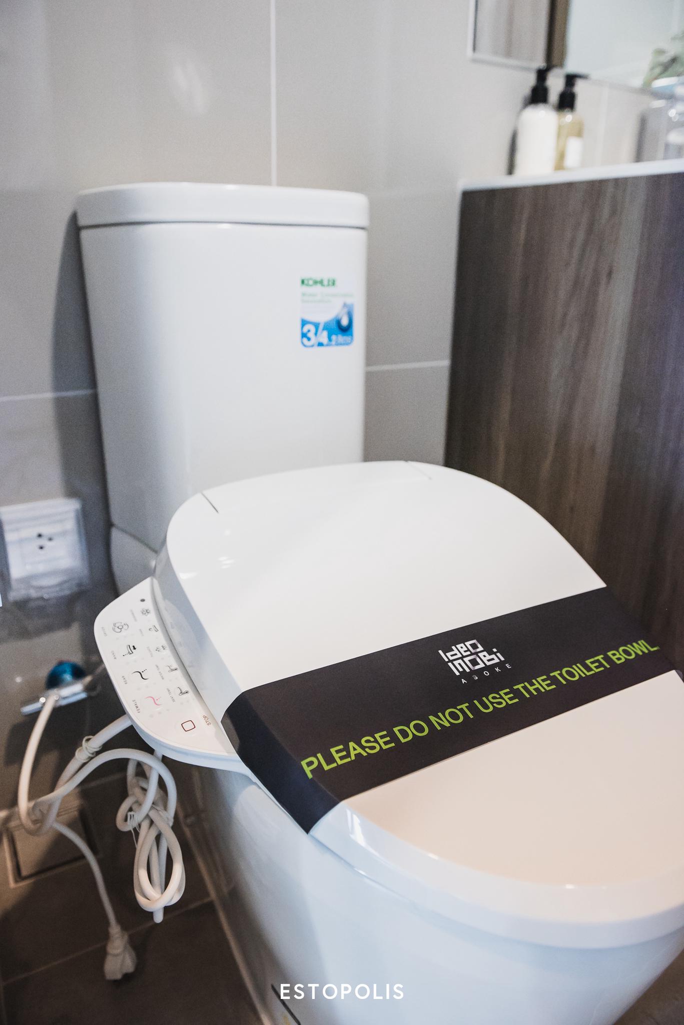 สำหรับโถสุขภัณฑ์จะเป็นระบบชำระล้างแบบอัตโนมัติจากแบรนด์ Kohler มีปุ่มควบคุมระบบน้ำและอุณหภูมิอยู่ด้านข้าง ง่ายต่อการใช้งาน