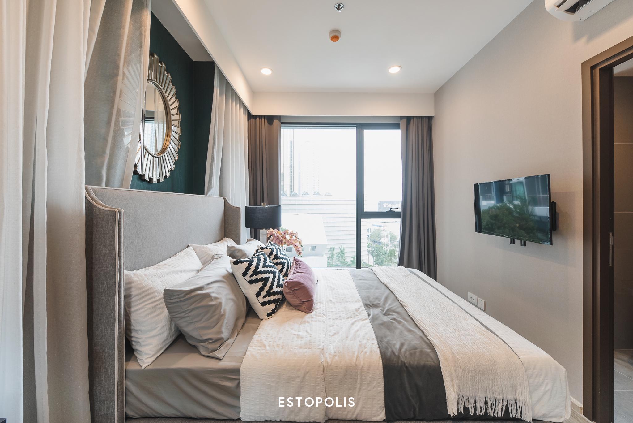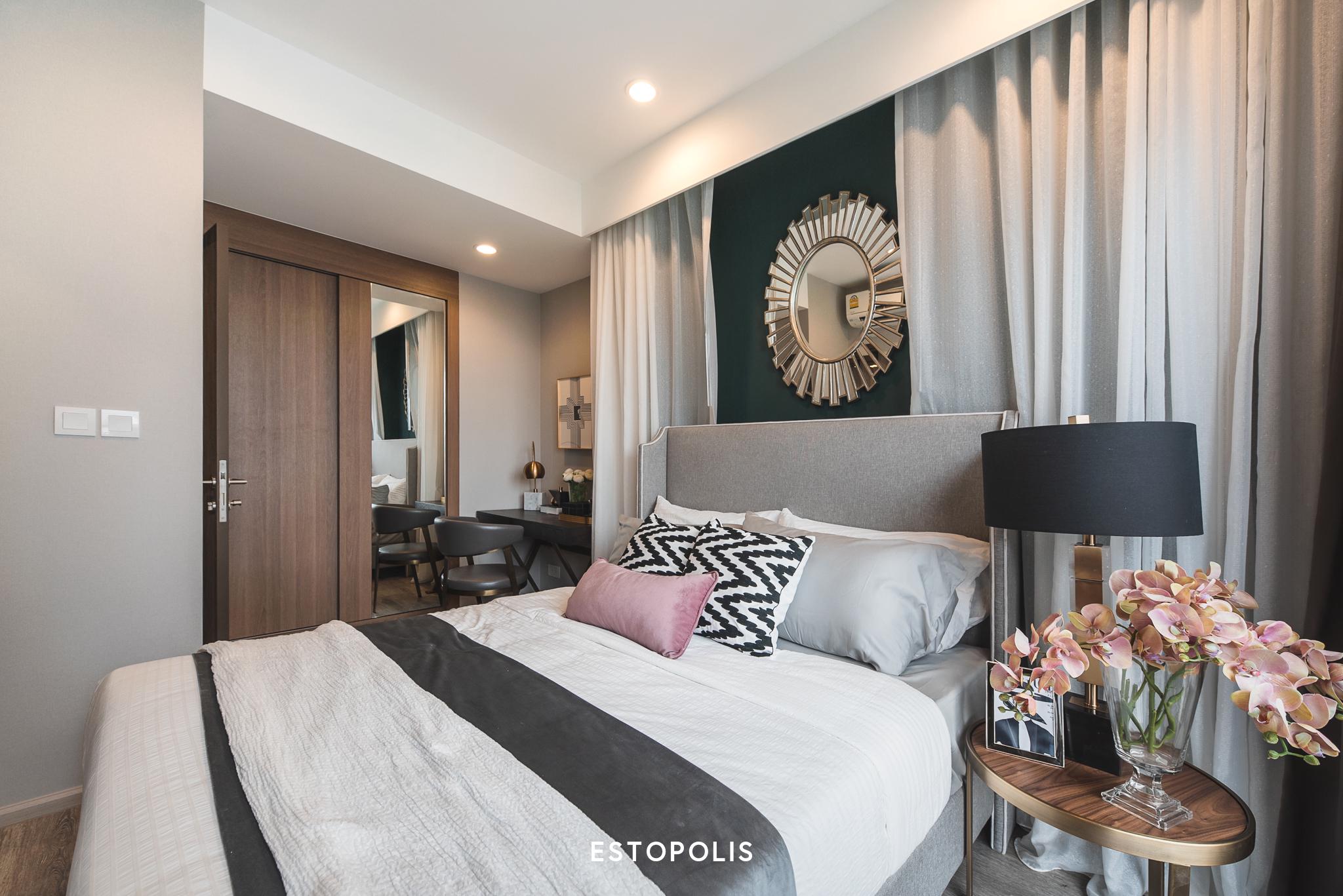 อย่างในห้องตัวอย่าง ทางโครงการ IDEO Mobi Asoke - (ไอดีโอ โมบิ อโศก) เองก็ได้ดีไซน์ให้เป็นห้องนอนเล็กสำหรับครอบครัว และคนที่อาศัยอยู่กันเป็นคู่ ซึ่งด้านในก็มีขนาดกว้างพอให้วางเตียงคิงไซส์ได้สบายๆ โดยไม่ทำให้อึดอัด พร้อมติดตั้งไฟ Downlight พร้อมอุปกรณ์ตรวจจับความร้อน และหัวกระจายน้ำดับเพลิงให้เช่นกัน เราจึงอุ่นใจได้ทุกเวลา แม้จะเป็นช่วงที่ไม่ได้อยู่ในห้อง