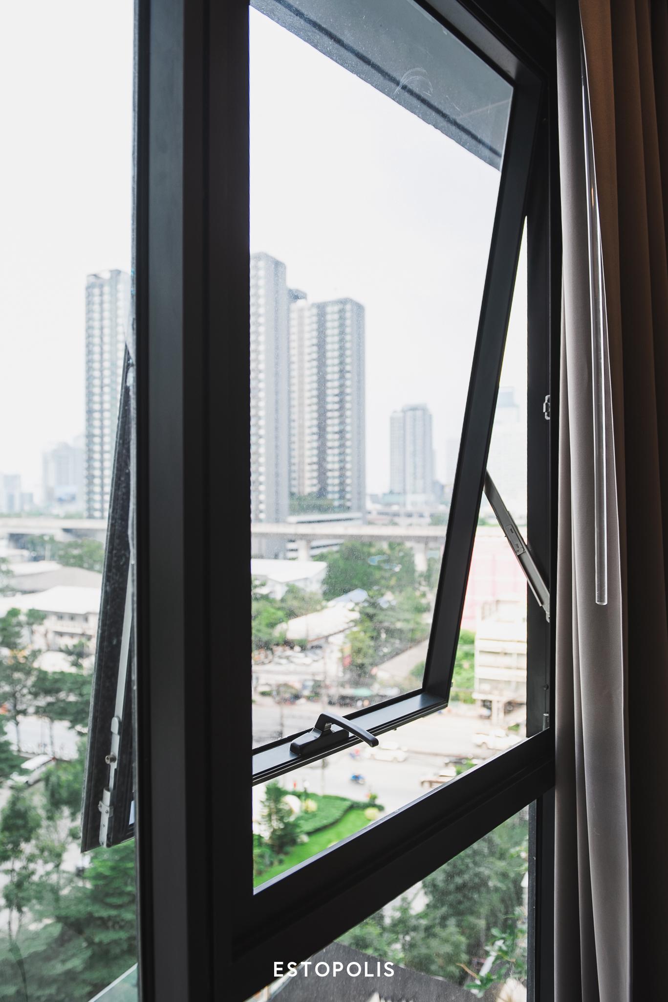 สำหรับใครที่อยากถ่ายเทอากาศสดชื่น ตรงกระจกใสในห้องนอนก็มีหน้าต่างบานกระทุ้งให้เปิดออกได้