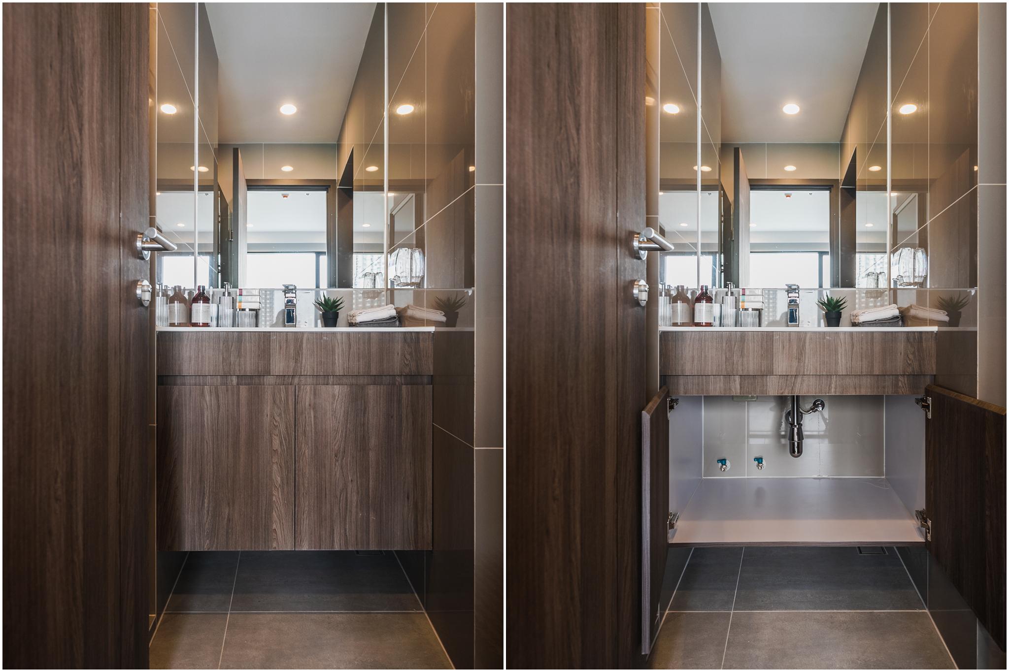 ส่วนด้านใต้เคาน์เตอร์อ่างล้างหน้าเองก็มีพื้นที่สำหรับเก็บของให้เช่นกัน พร้อมรองรับระบบน้ำร้อนเป็นมาตรฐานเดียวกันทั้งโครงการ