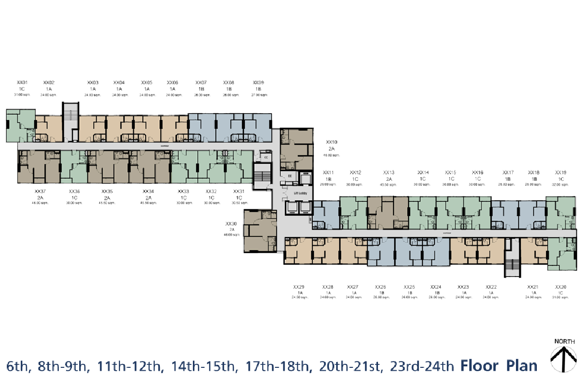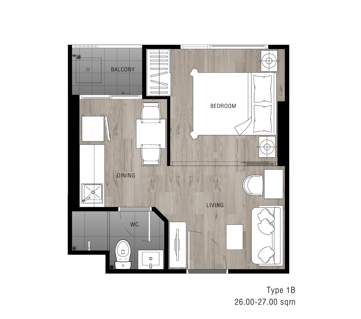 1 Bedrooms พื้นที่ใช้สอย 26 ตร.ม. ราคาเริ่มต้น 1.39 ล้านบาท