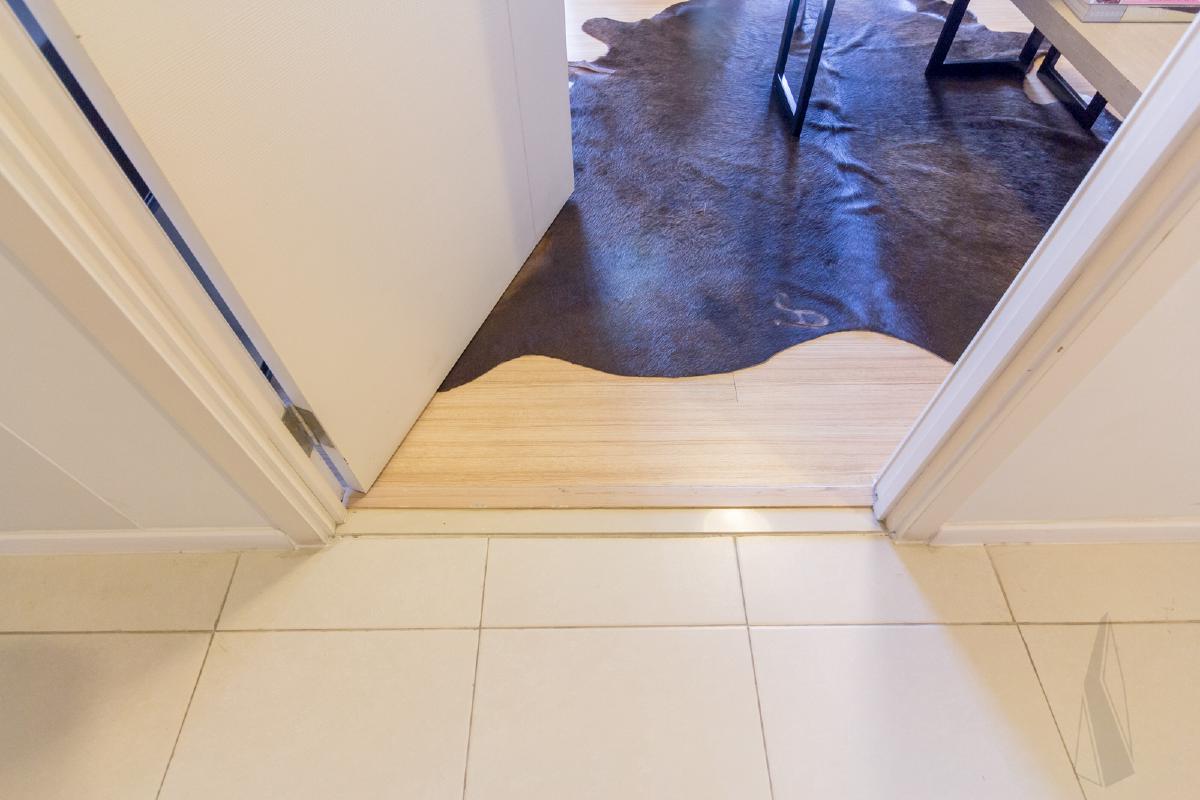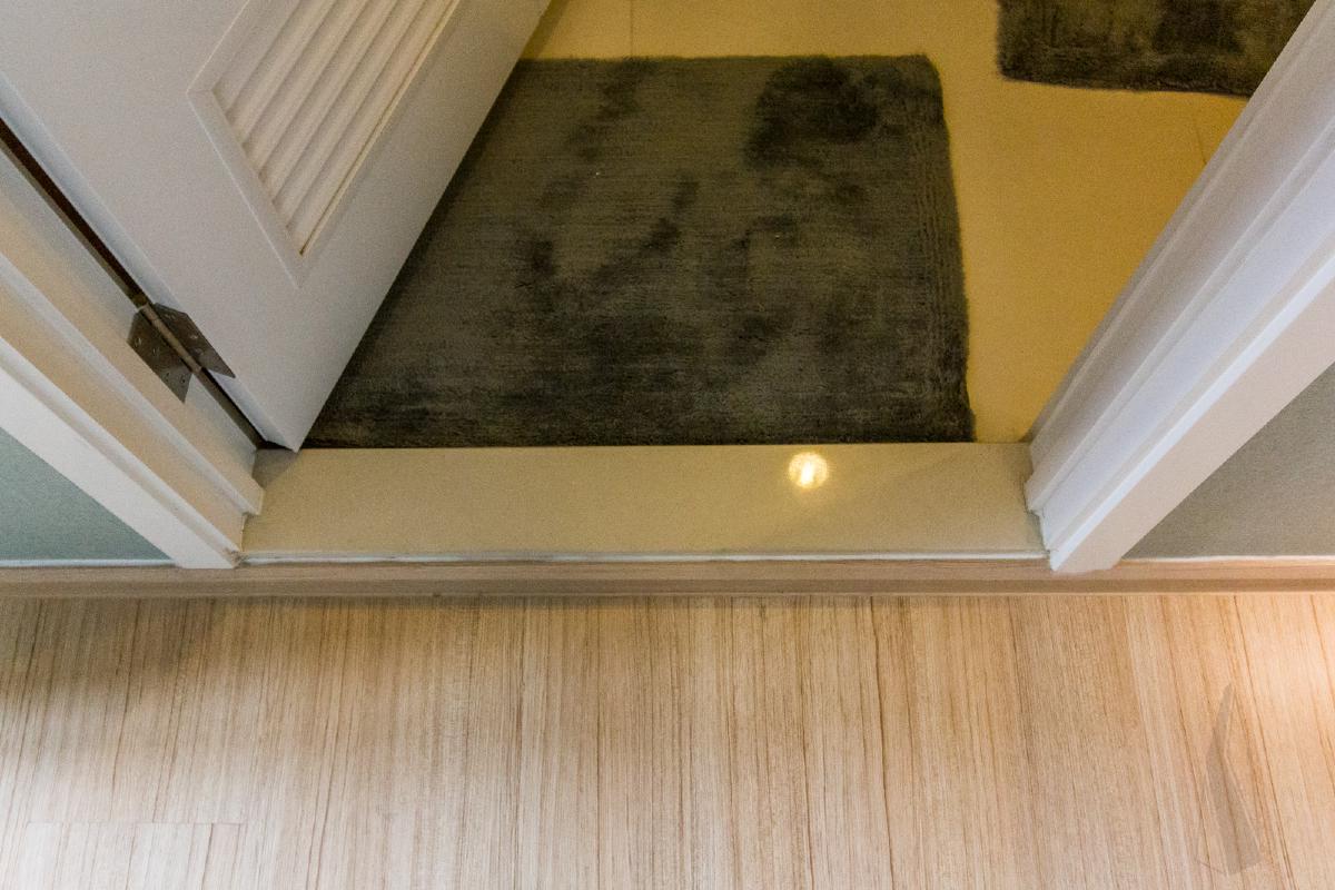 พื้นห้องเป็นพื้นลามิเนต แตกต่างจากพื้นโถงทางเดิน ธรณีประตูยกสูงขึ้นจากบริเวณพื้นหน้าห้อง ป้องกันฝุ่นละออกปลิวเข้ามาภายในห้อง