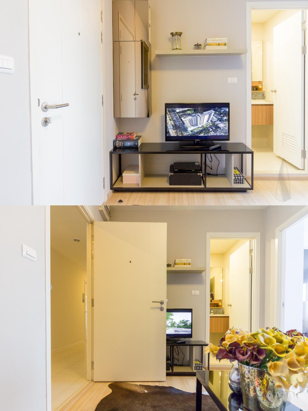 ด้านหลังประตูทุกห้องจะติดตั้ง Door stopper กันประตูกระแทกเข้ากับเฟอร์นิเจอร์ หรือผนังให้เรียบร้อย