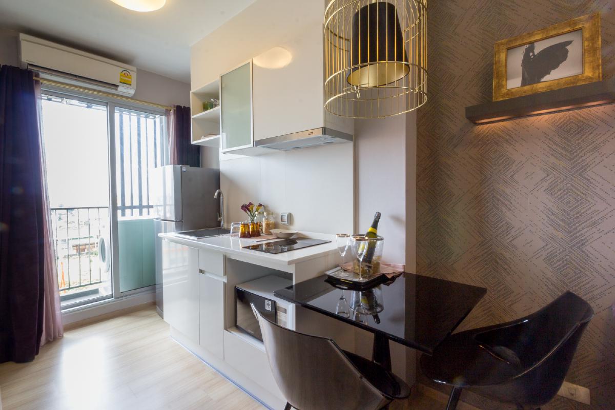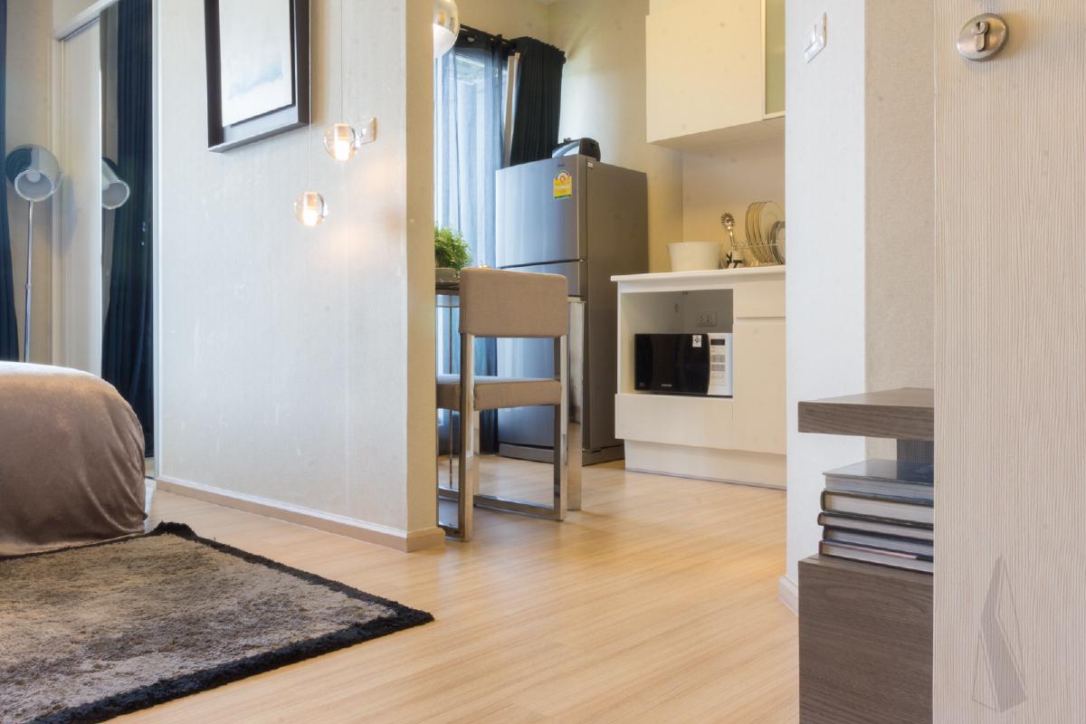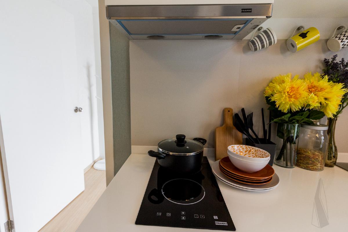 ห้องแบบ Studio ขนาด 26 ตารางเมตรของ ฟิวส์ เซนเซ่ บางแค (Fuse Sense Bangkae) ขายแบบ Fully Furnished ให้ทั้งเฟอร์นิเจอร์แบบ Built-in และลอยตัว จาก Index พร้อมชุดเคาน์เตอร์ครัวมาให้ ส่วนสุขภัณฑ์ห้องน้ำจะเป็นแบบมาตรฐานของคอนโดทั่วไปจาก American standard