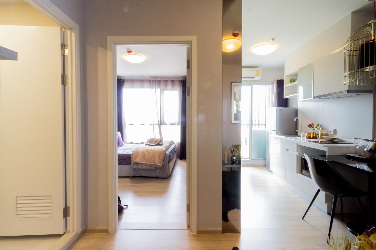 ออกมาจากห้องน้ำด้านขวามือจะเป็นห้องนอนเล็ก ซึ่งอยู่ติดกับบริเวณครัว พื้นห้องทั้งหมดปูด้วยลามิเนตสีอ่อนตามภาพ
