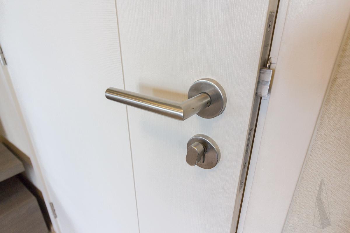 ประตูเป็นแบบก้านโยกโครเมียมมาตรฐาน พร้อมตัวล็อกแบบ 2 ชั้น