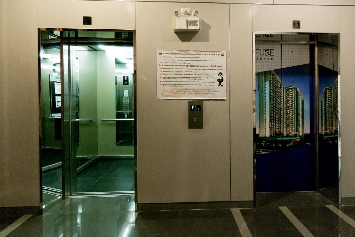 ด้านโถงลิฟต์จะอยู่สุดทางเดินมีให้ใช้ 2 ตัว เป็นแบบล็อกชั้น และมีลิฟต์ขนของให้อีก 1 ตัว