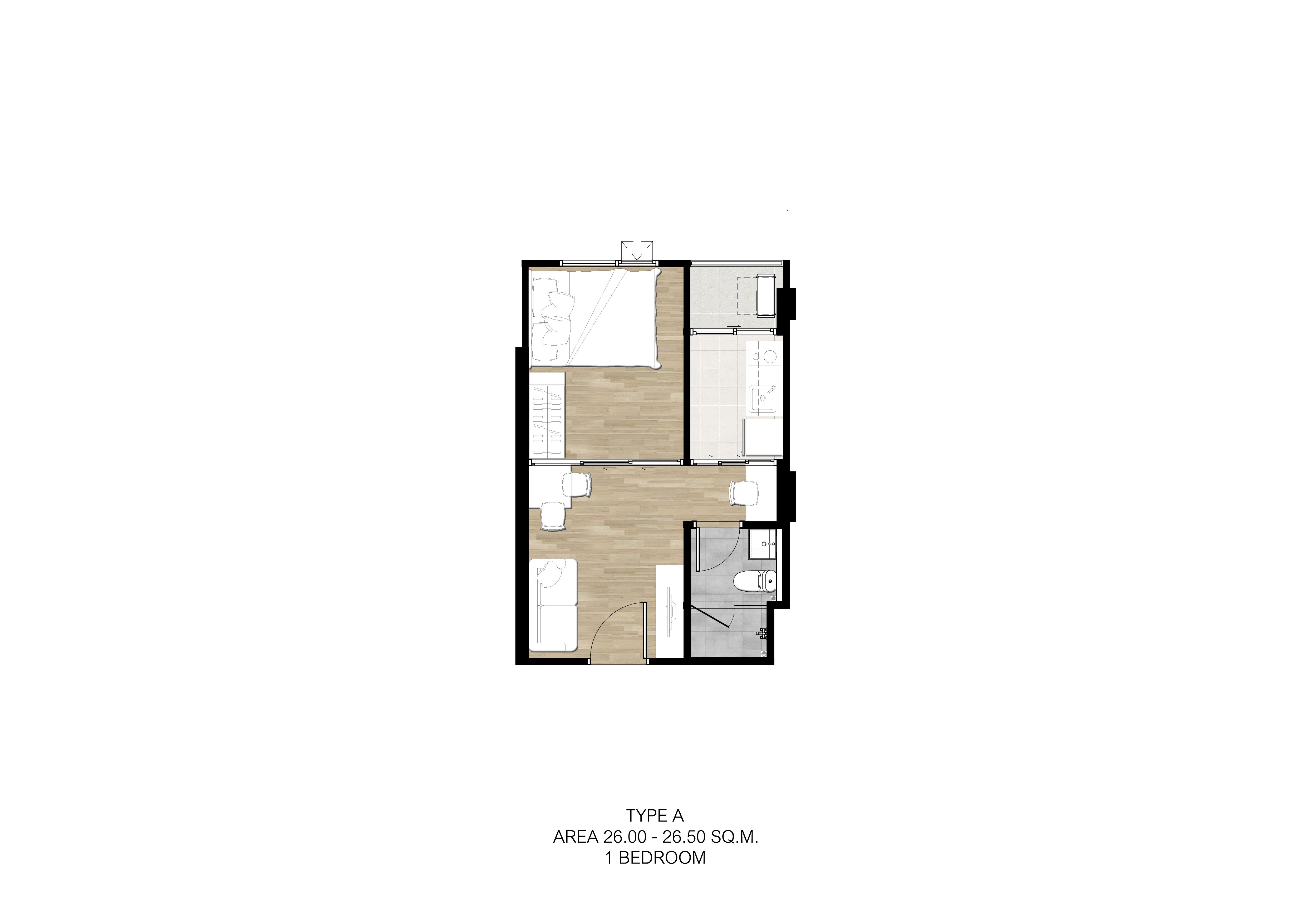 - 1 ห้องนอน ขนาด 26.00 - 26.50 ตร.ม.