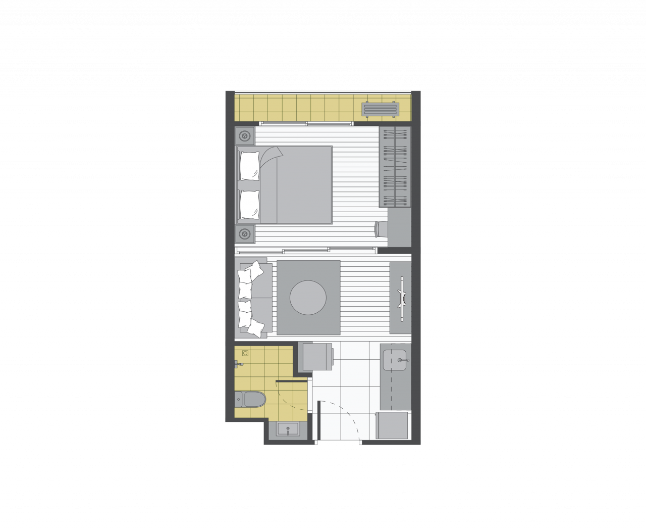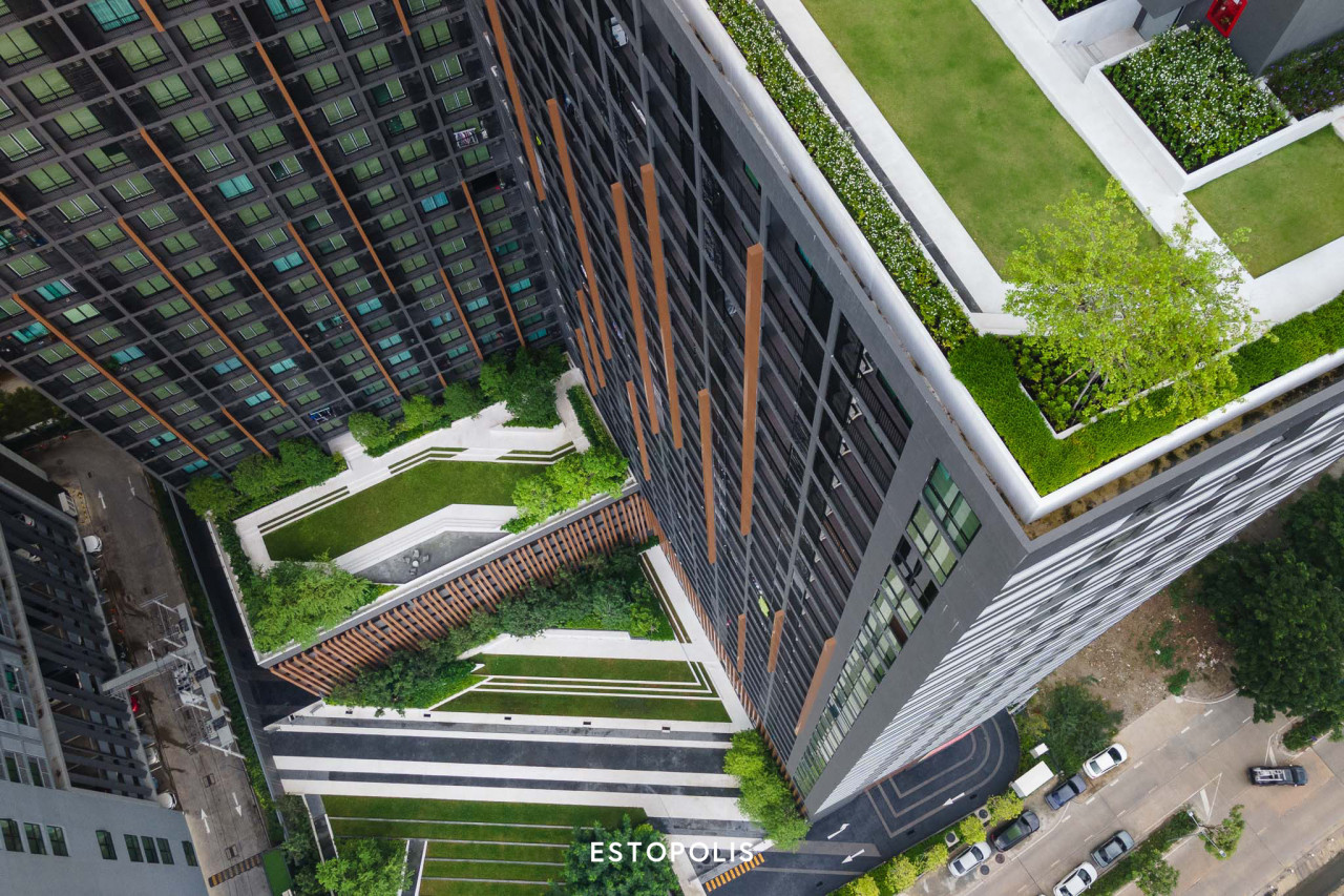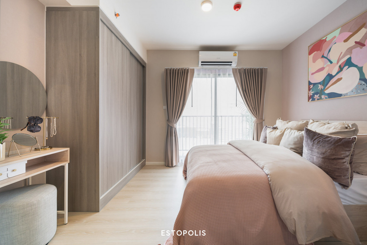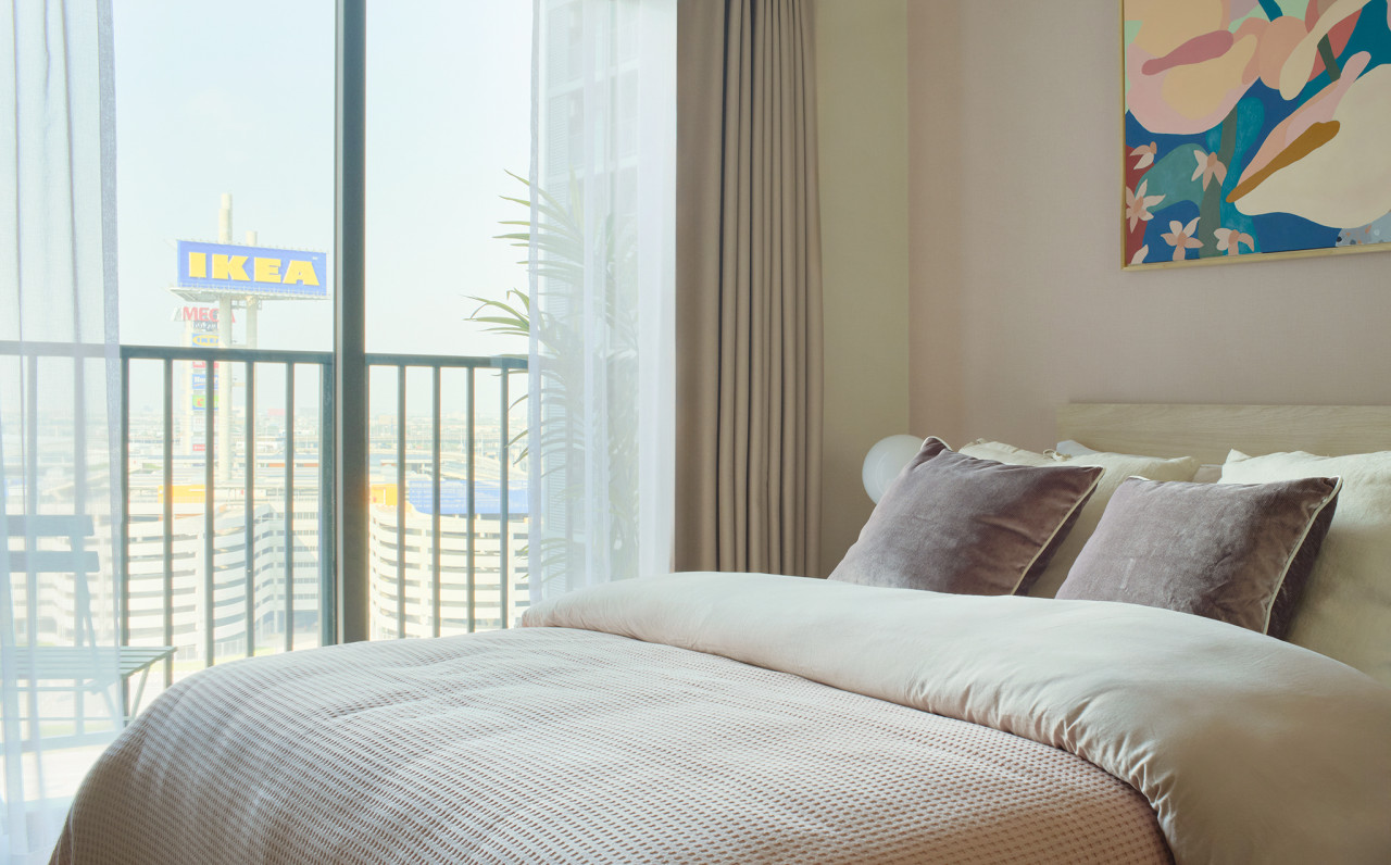 - การออกแบบห้องพักเน้นความโปร่งโล่ง ขนาดห้องเริ่มต้นใหญ่ที่สุดในย่าน จึงตอบโจทย์การใช้งานเมื่ออยู่อาศัยจริง พร้อมฟังก์ชันหลากหลายรูปแบบ