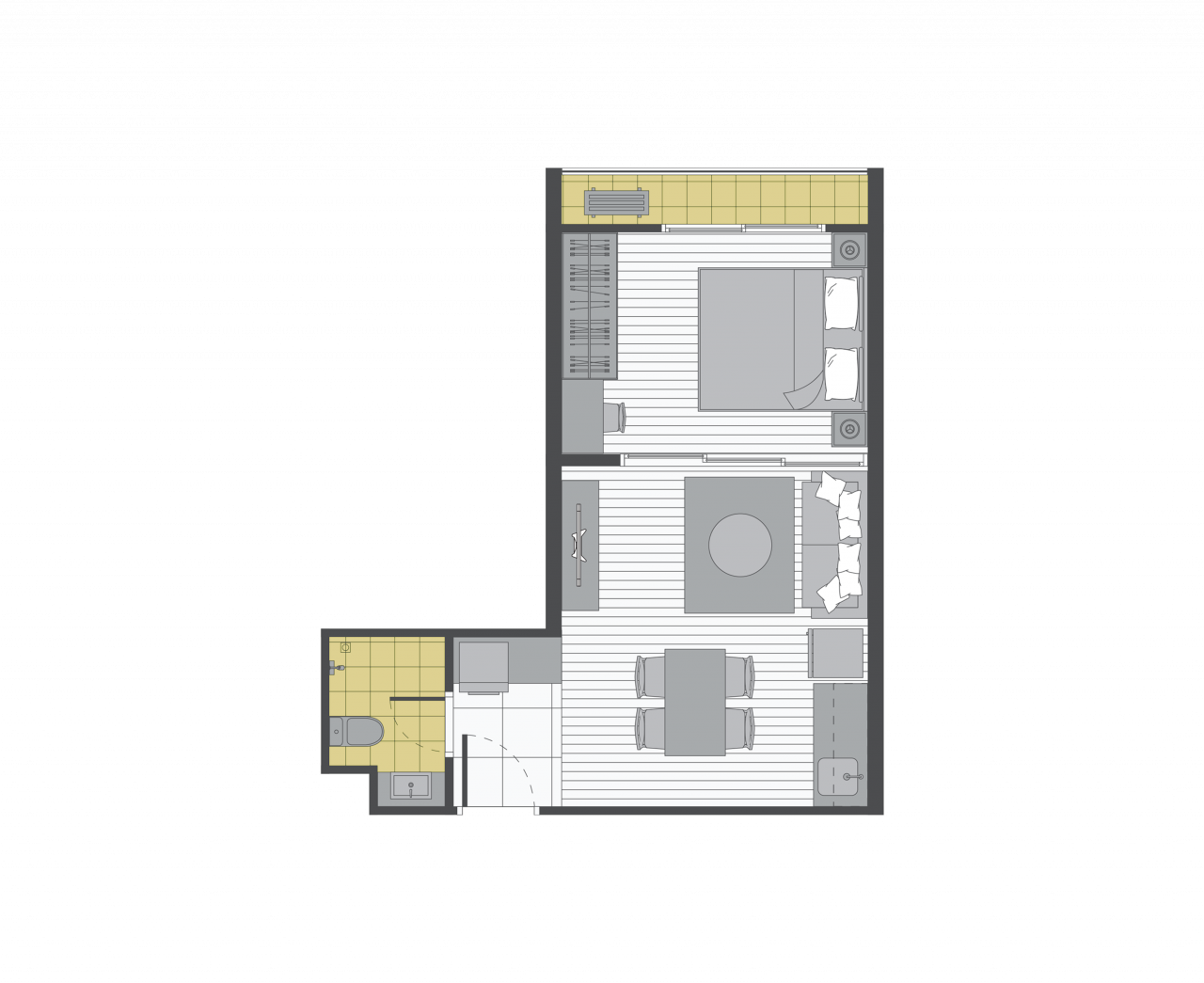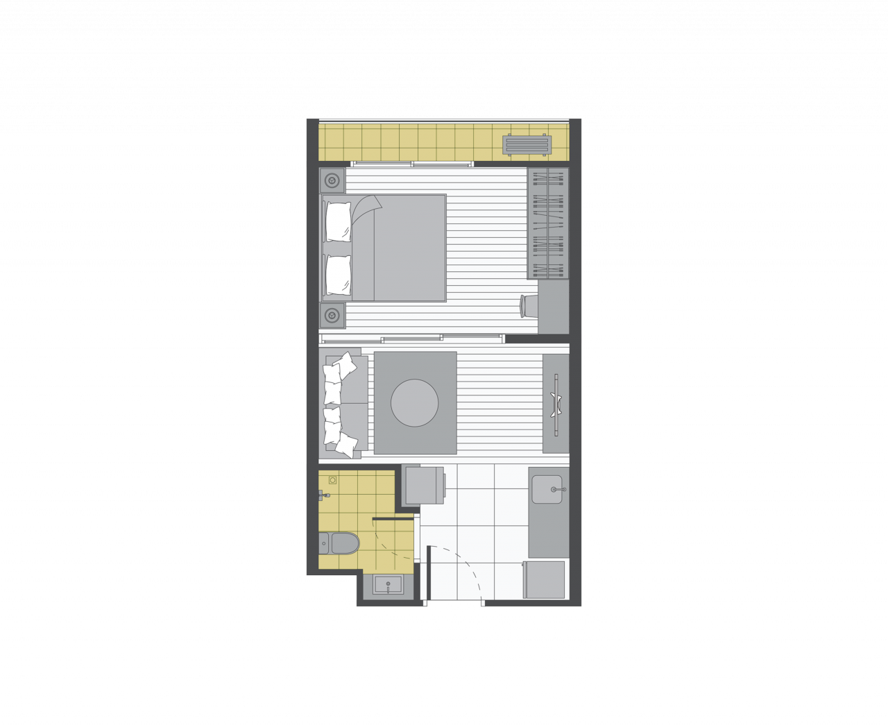 - 1 Bedroom Type AC ขนาด 31.06 ตร.ม.