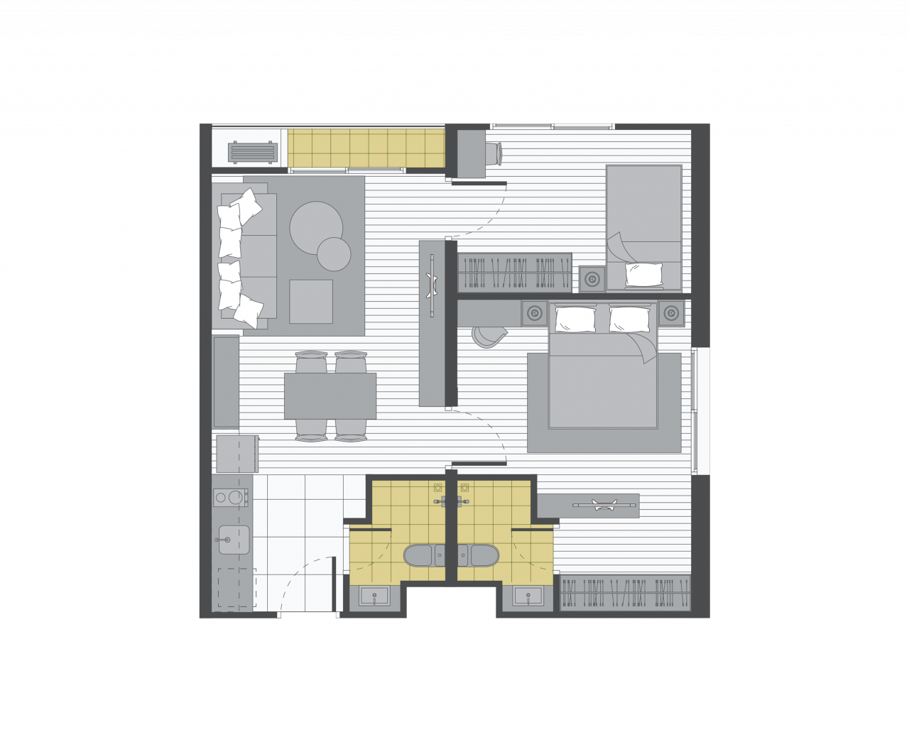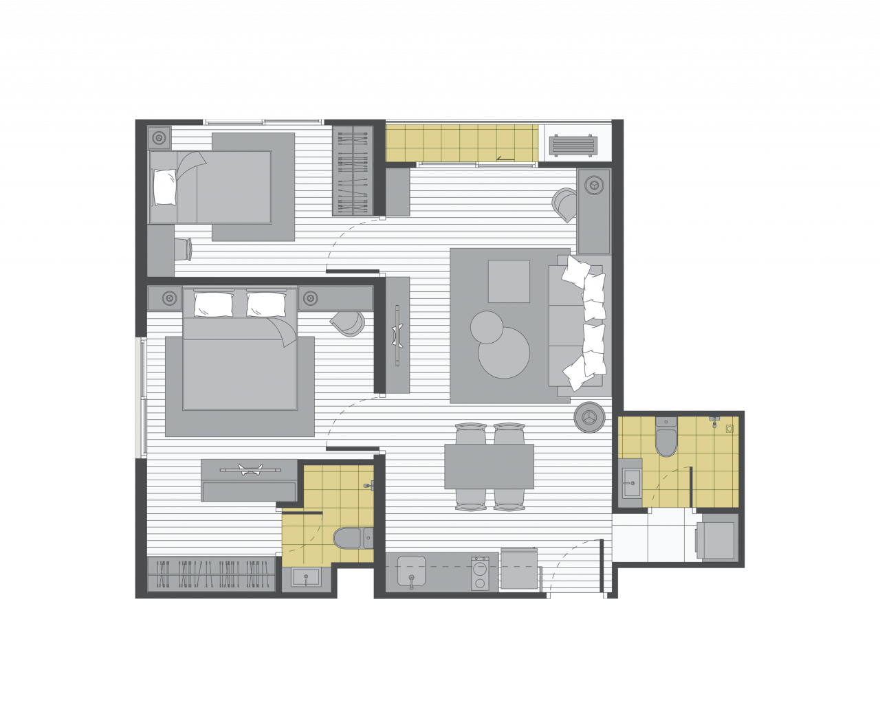 - 2 Bed 2 Bath Type BA ขนาด 56.32 ตร.ม.