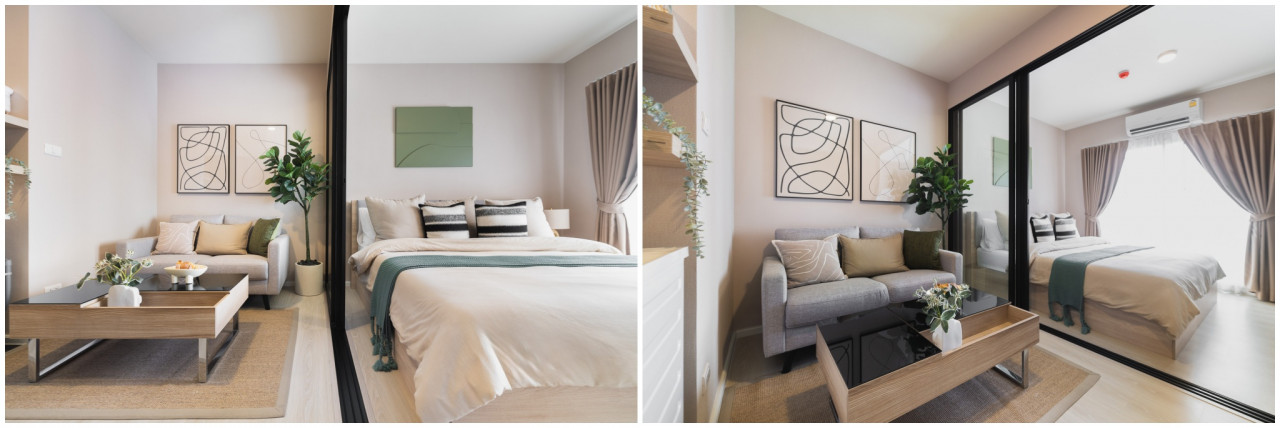 - ตัวห้องแบบ Fully Furnished ที่ให้เฟอร์นิเจอร์มาอย่างครบครัน และใครอยากได้ห้องแบบครบพร้อมจบทั้งอยู่อาศัยเองและปล่อยเช่าง่าย ทางโครงการมี Fully Décor Package ให้เลือก ได้ทั้งเฟอร์นิเจอร์ และของตกแต่งครบ ได้ตามที่เห็น