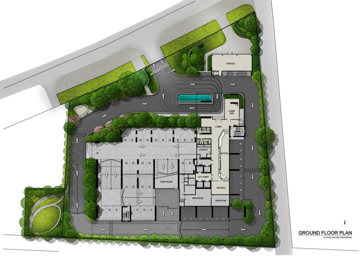 บริเวณ Ground Floor ที่ติดกับถนนด้านหน้าโครงการนั้น จะเป็นช่องทางเดินรถเข้า-ออกแบบทางเดียว พร้อมจุด Drop Off ในลักษณะวงเวียน เพื่อให้เราจอดรับ-ส่งคน และสามารถวนรถออกในทิศทางเดียวกันได้อย่างสะดวก