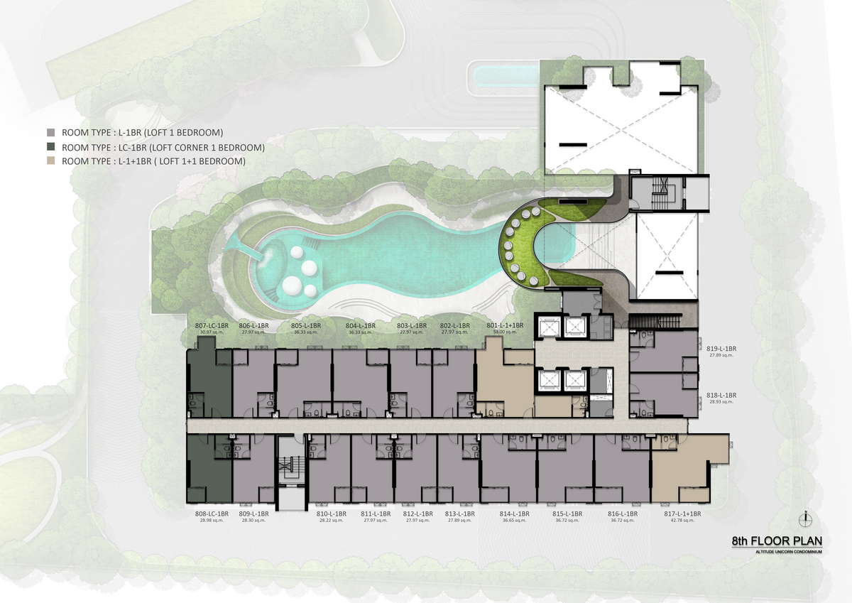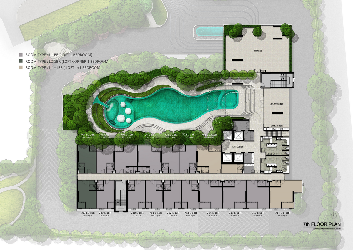 - Room Type : L-1BR (Loft 1+1 Bedroom) 13 ยูนิต