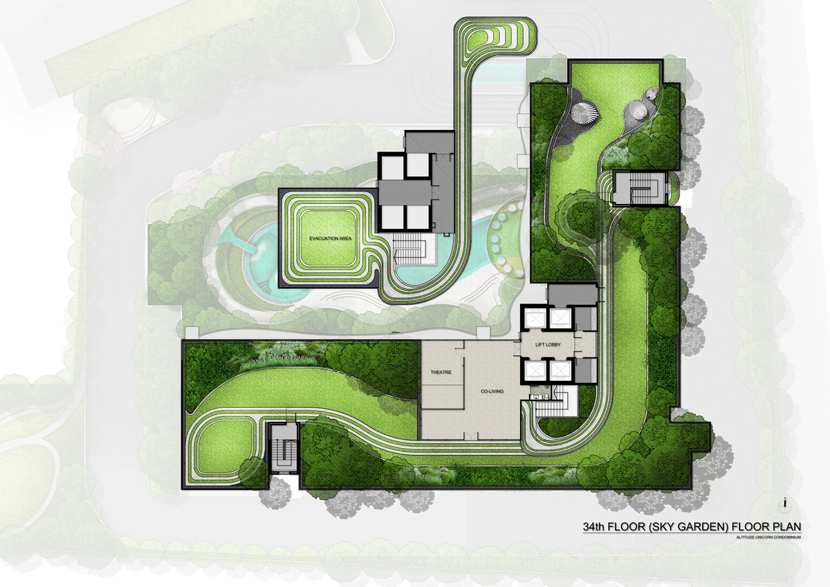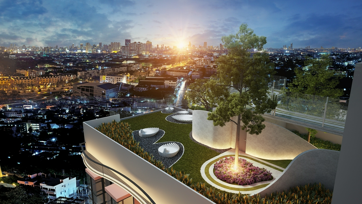 และแล้วก็มาถึงชั้นที่ 34 หรือ Sky Garden ซึ่งชั้นนี้จะเป็นชั้น Rooftop สูงสุดของโครงการ ประกอบไปด้วยพื้นที่ส่วนกลางทั้งหมด 4 ส่วนด้วยกัน แบ่งเป็น Theatre, Co-Living, Rooftop Garden และ Rooftop Jogging Track ที่ให้ความรู้สึกร่มรื่น สบายตา ทั้งยังดูพริ้วไหว เหมาะจะชวนกันมานั่งรับลม ชมพระอาทิตย์ตกช่วงเย็น