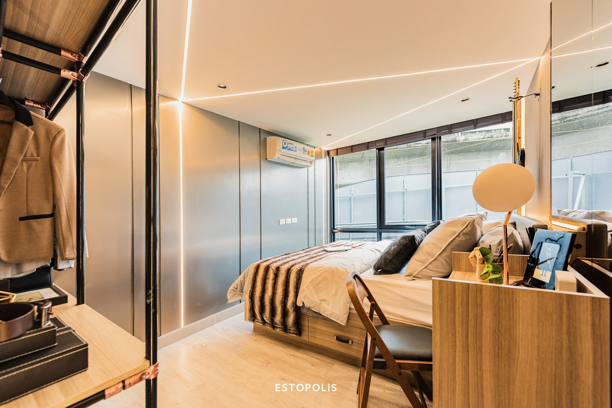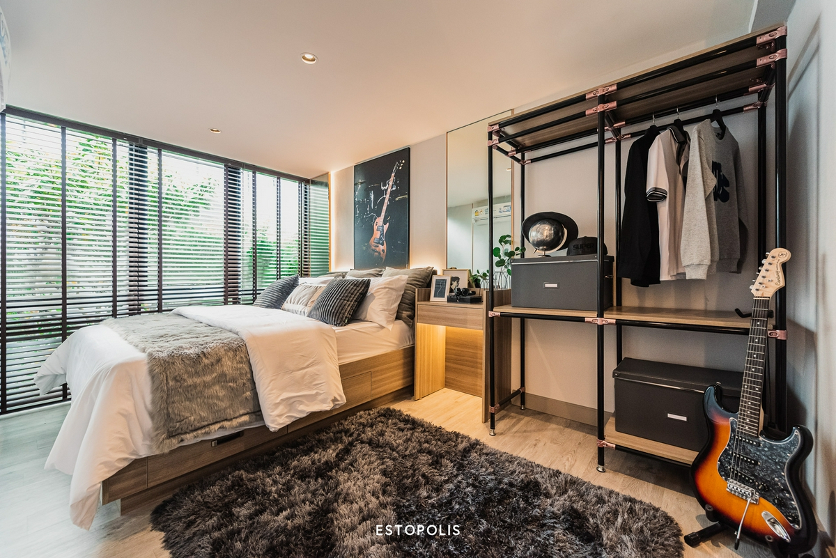ซึ่งตู้เสื้อผ้าก็สามารถเลือกได้ทั้งแบบเปิด และแบบปิด ส่วนบริเวณโต๊ะข้างเตียงก็สามารถแขวนกระจกติดผนังเพิ่มเติม เพื่อทำเป็นโต๊ะเครื่องแป้งได้ในตัว