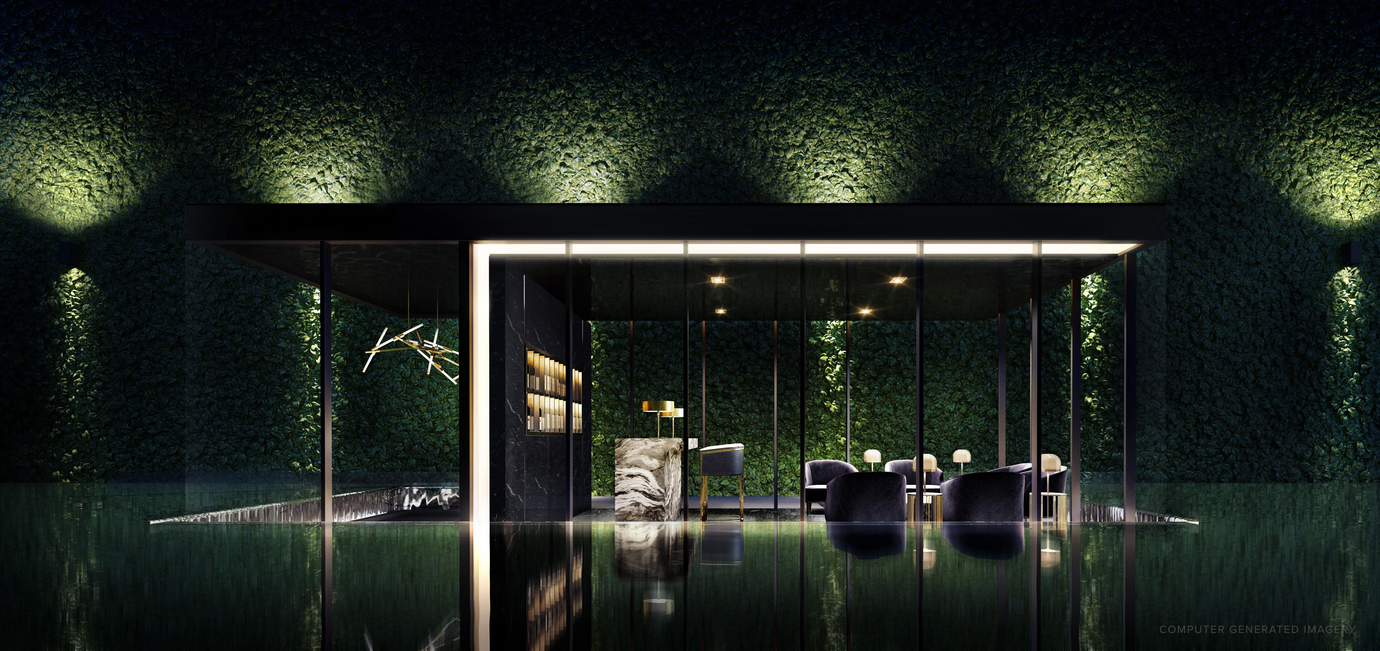 ที่ให้ความรู้สึกเหมือนลอยอยู่กลางน้ำ พร้อมด้วยพื้นที่รับรองแขกที่ดูหรูหรา