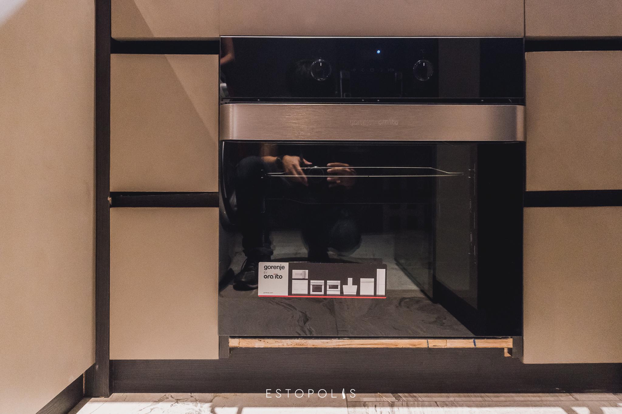 ด้านล่างเคาน์เตอร์มีเตาไฟฟ้าบิลท์อิน (Built-in) แบบ Combi-Oven จากแบรนด์ Gorenje ที่มาพร้อมฟังก์ชันการใช้งานหลากหลาย เป็นได้ทั้งเตาอบและเตาไมโครเวฟให้เราสนุกไปกับการทำอาหาร ของหวานได้ครบทุกรูปแบบ