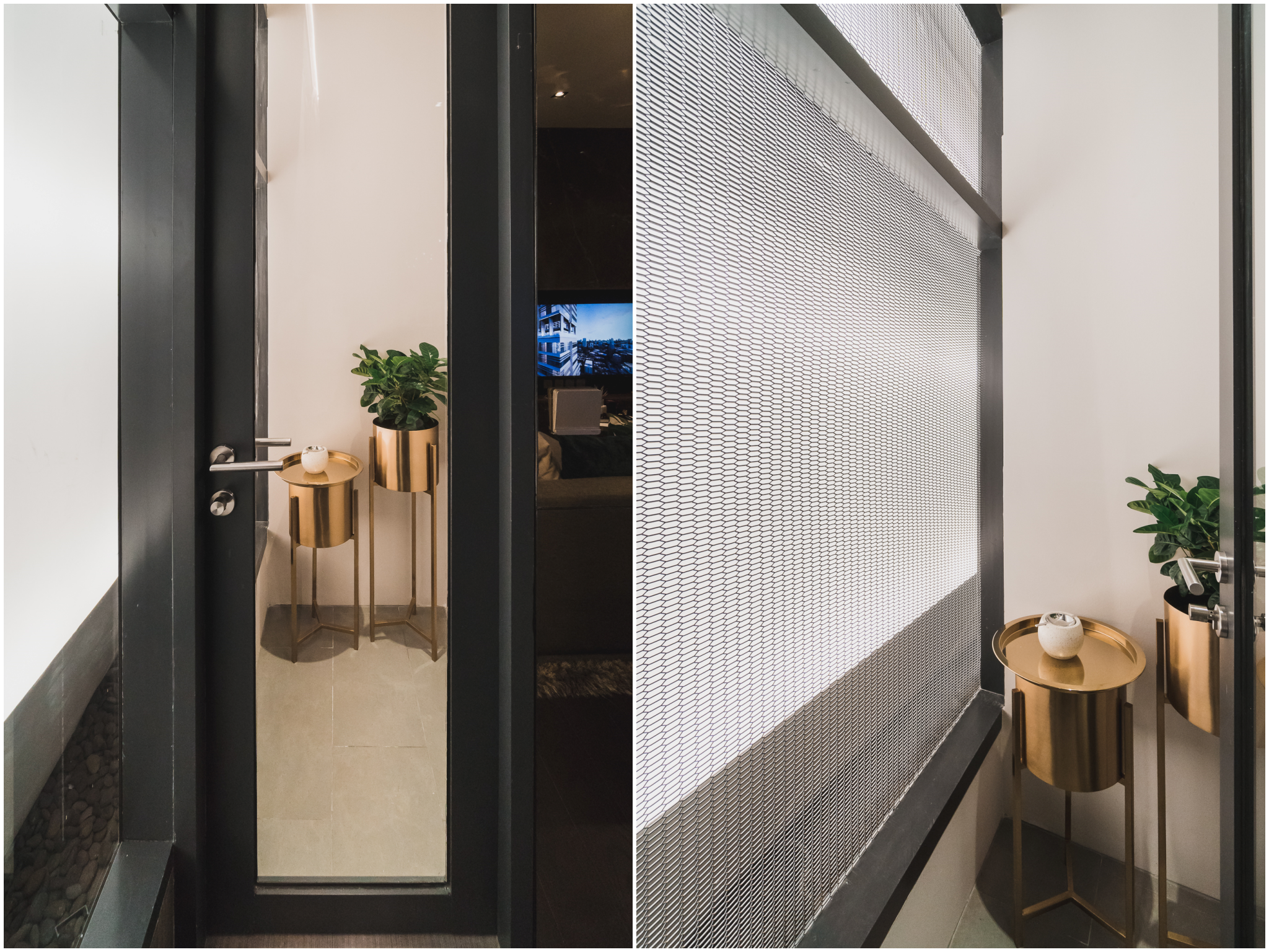 กั้นกระจกใสที่มีความสูงเต็มบาน ให้เรามั่นใจได้ว่าบริเวณชั้น Loft นี้จะมีความปลอดภัย ขณะเดียวกันเมื่อนำมารวมกับความสูง 2 เมตรก็ไม่ทำให้อึดอัดสายตา หรือใครอยากได้ความเป็นส่วนตัวก็อาจหามู่ลี่หรือฟิล์มขุ่นมาติดกระจกเพิ่มได้