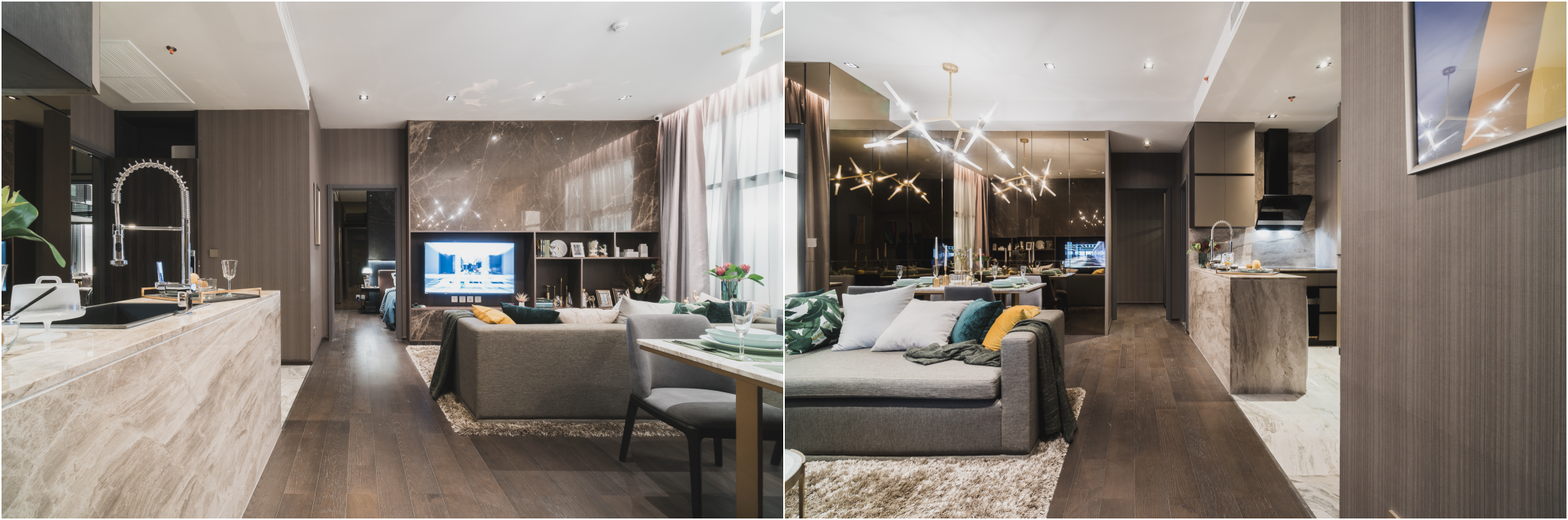 ออกแบบ 'ห้องนั่งเล่น' ให้มีขนาดใหญ่ เพื่อช่วยเติมเต็มช่วงเวลาพักผ่อนให้ผู้พักอาศัยได้อย่างเต็มที่ ด้วยขนาดห้องที่กว้างขวางเป็นพิเศษ เราจึงสามารถวางโซฟาตัวใหญ่ได้สบายๆ และยังเหลือพื้นที่ให้ตกแต่งเป็นมุมทานข้าวสำหรับทุกคนในครอบครัวได้อีกด้วย