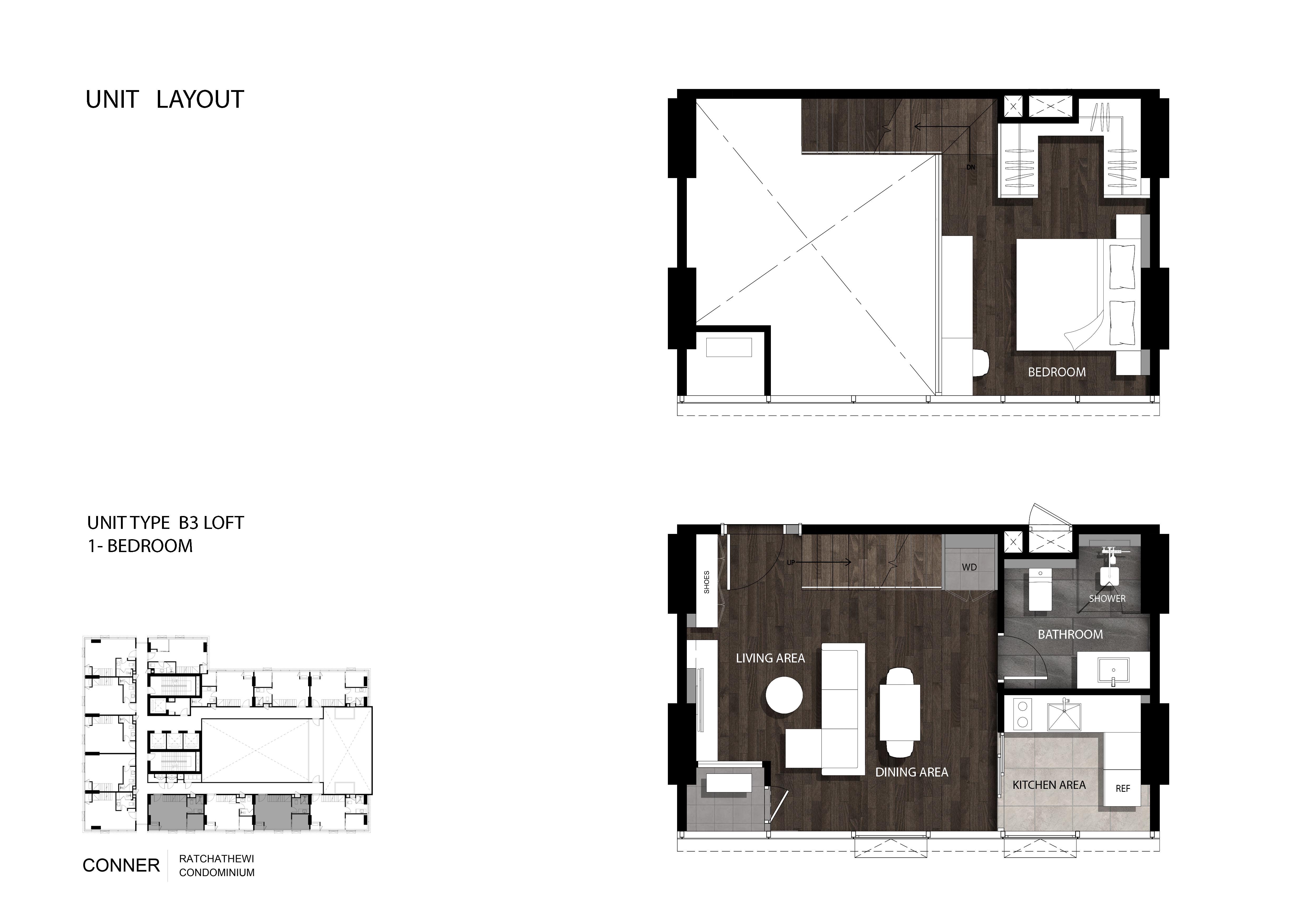 Type B3 Loft : 1BR 34.90 Sq.m.