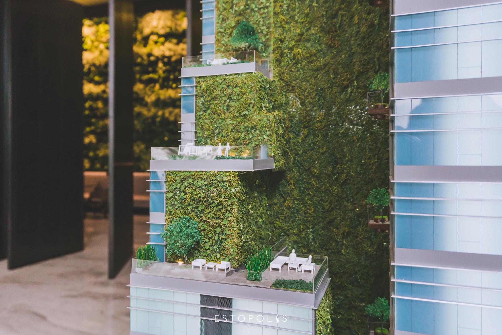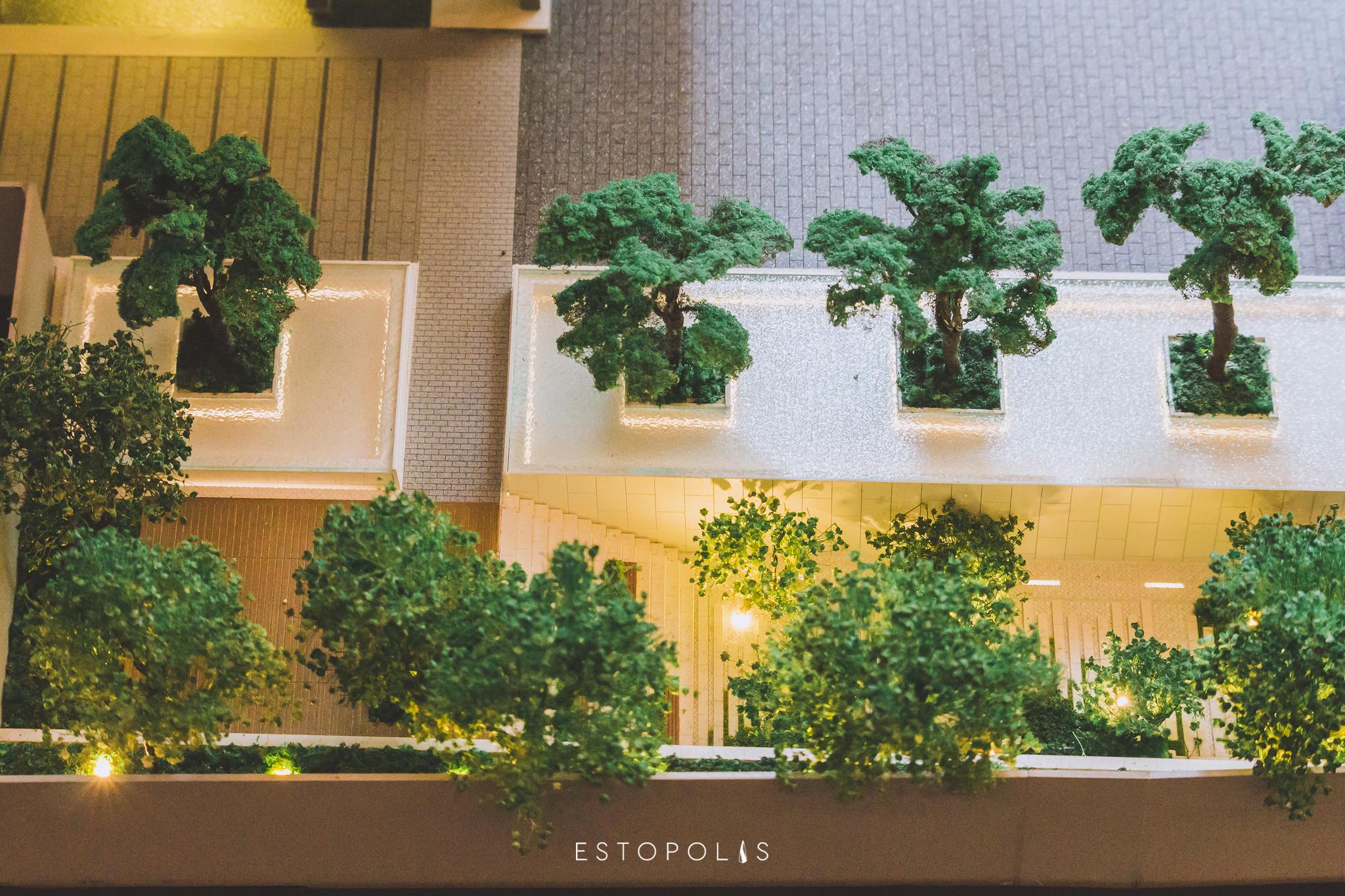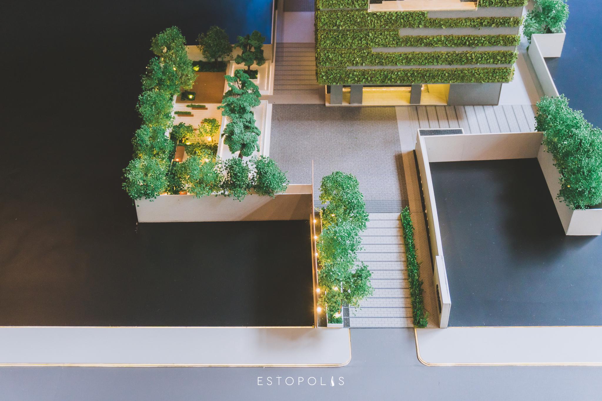 แม้โครงการจะอยู่ใจกลางเมืองใหญ่ แต่ก็ยังไม่ละเลยพื้นที่สีเขียว จึงออกแบบให้มีต้นไม้น้อยใหญ่แซมอยู่ตลอดทาง ตั้งแต่หน้าโครงการเรื่อยไปจนถึงบริเวณรอบๆ อาคาร