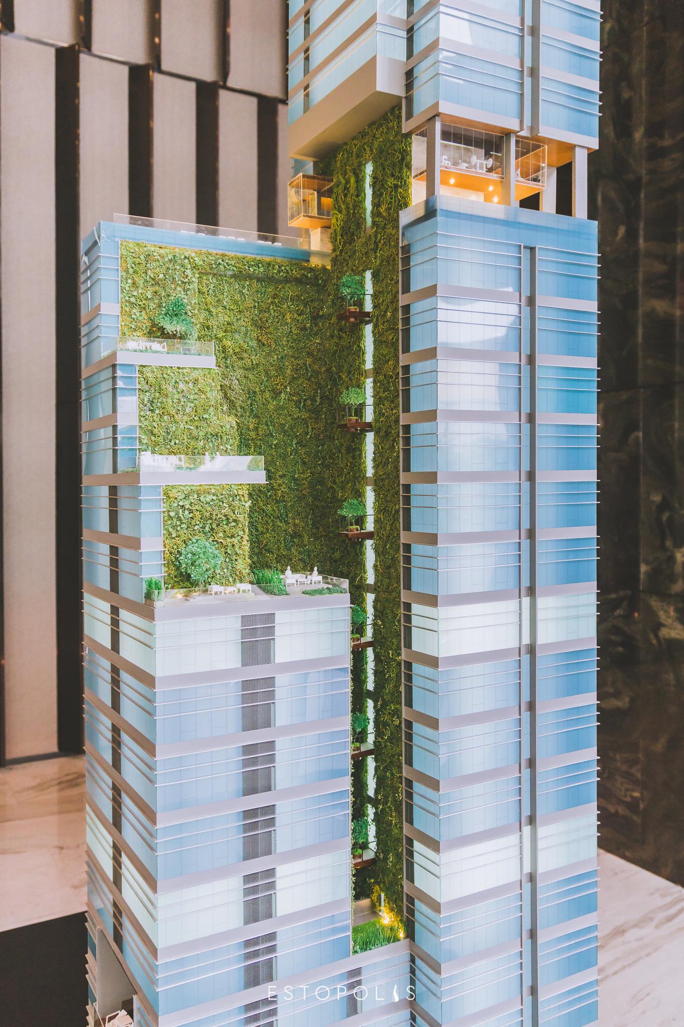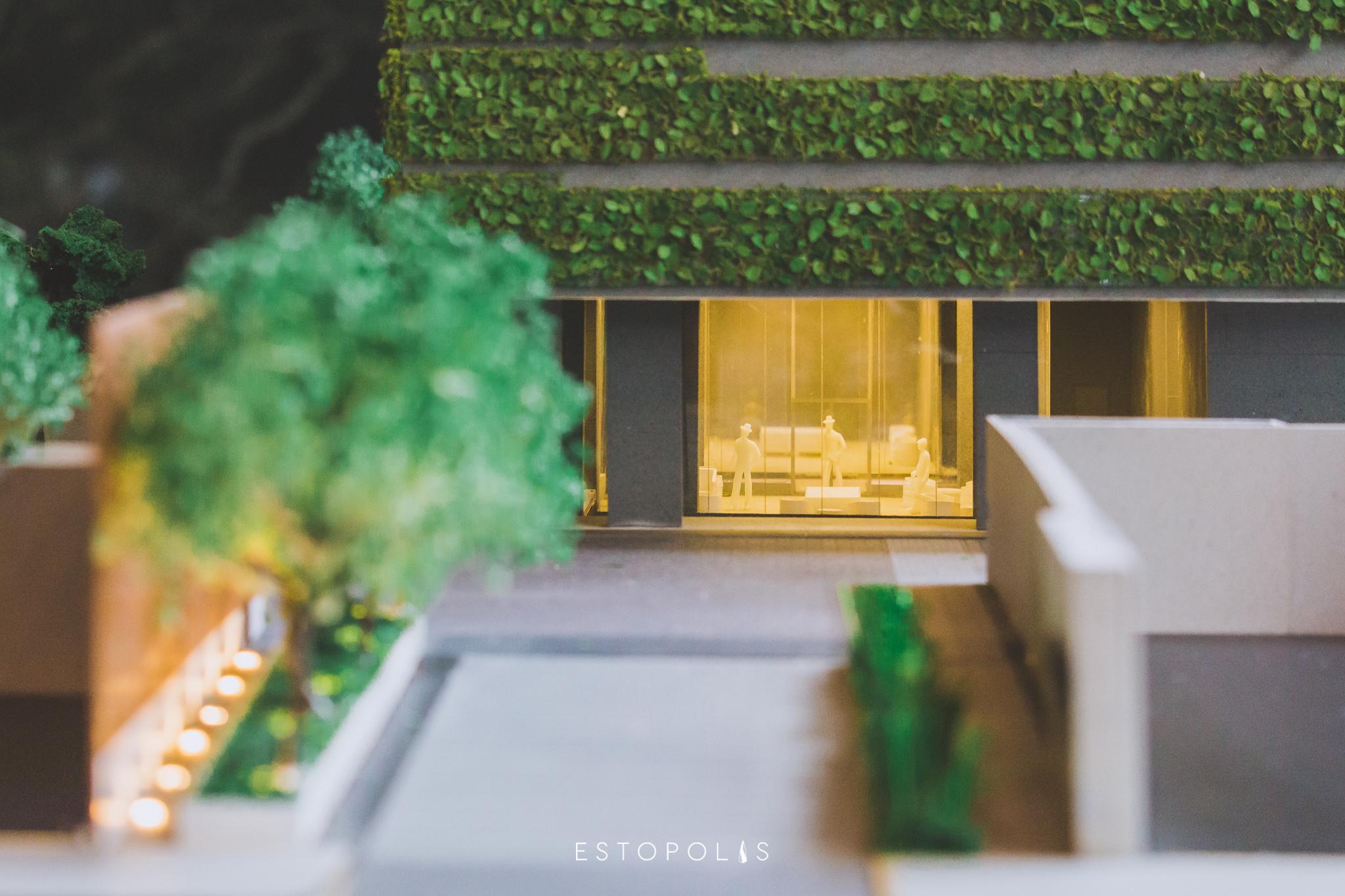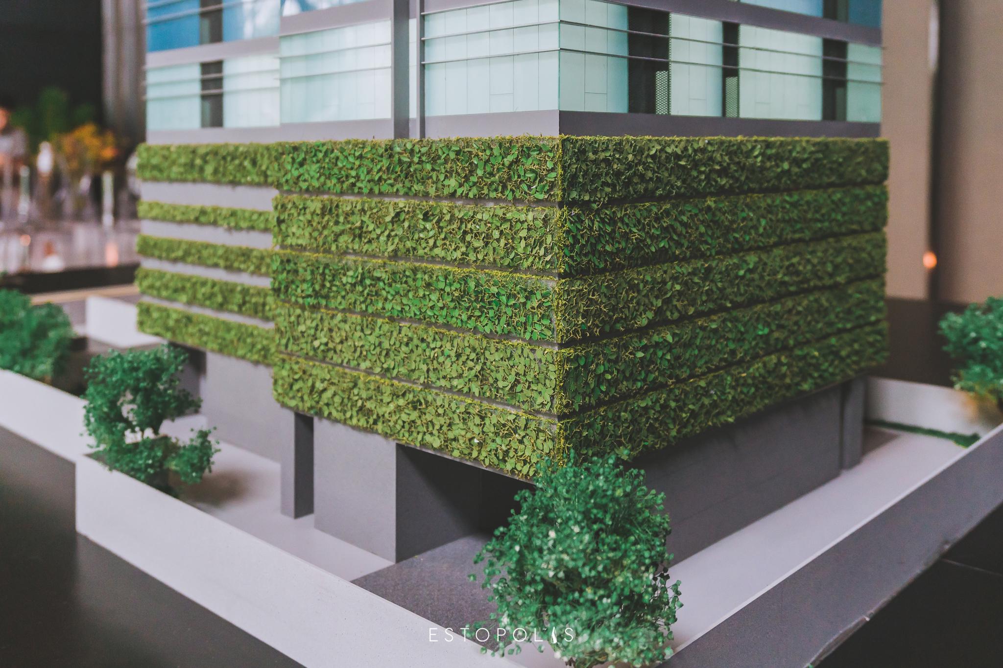 แม้โครงการจะอยู่ใจกลางเมืองใหญ่ แต่ก็ยังไม่ละเลยพื้นที่สีเขียว จึงออกแบบให้มีต้นไม้น้อยใหญ่แซมอยู่ตลอดทาง ตั้งแต่หน้าโครงการเรื่อยไปจนถึงบริเวณรอบๆ อาคาร