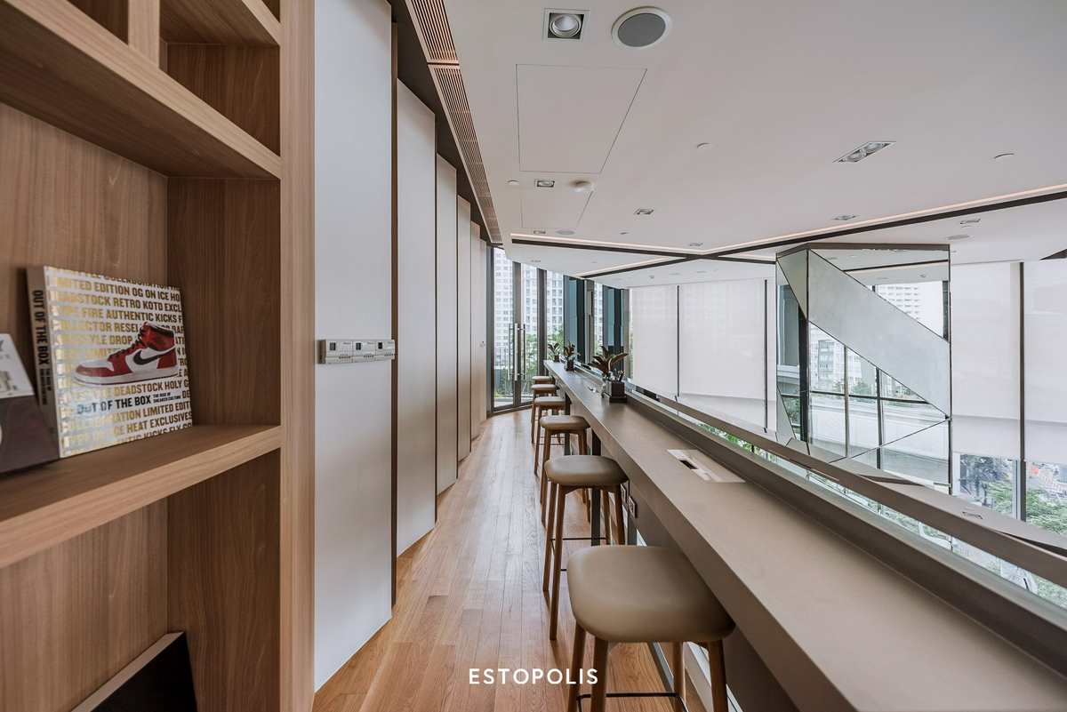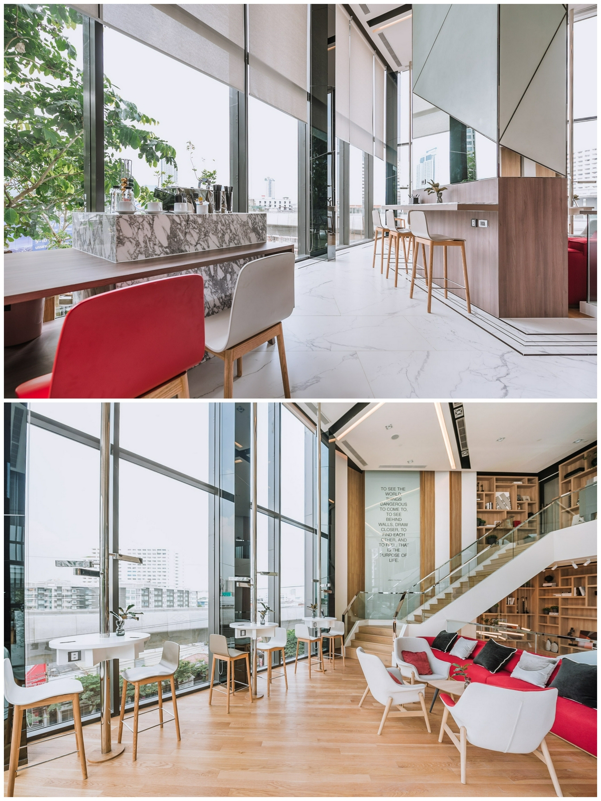 ปิดท้ายพื้นที่ Triple Volume Co-Working Space ด้วย Upper Floor บริเวณชั้น 5 : มุม Reading Bar เงียบสงบ ที่จัดไว้สำหรับผู้ที่ต้องการใช้สมาธิมากเป็นพิเศษ ไม่ว่าจะขึ้นมาอ่านหนังสือ หรือทำงานสำคัญก็ตอบโจทย์ มองเห็นวิวมุมสูงจากจุดนี้ได้ชัดเจน