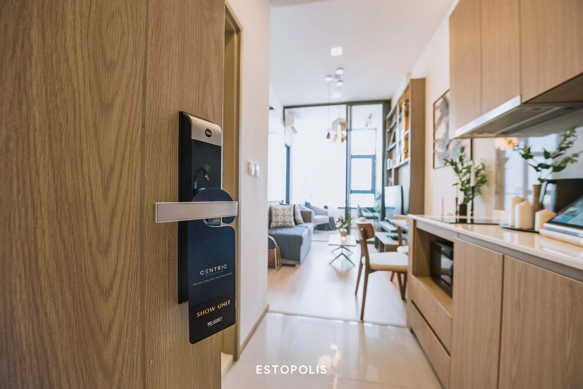คราวนี้ก็มาทำความรู้จักโครงการ Centric Ratchayothin แบบลึกซึ้ง ให้เห็นถึงรายละเอียดของส่วนต่าง ๆ ภายในห้องกันเลยดีกว่า... เริ่มจากประตูทางเข้าห้อง ที่ทางโครงการเลือกใช้บานประตูวัสดุ HDF ปิดผิวด้วยเมลามีนลายไม้ ให้ความสวยงาม มาพร้อมกับช่องตาแมวที่มีแผ่นเหล็กกั้น ป้องกันการถูกสอดส่องจากด้านนอก