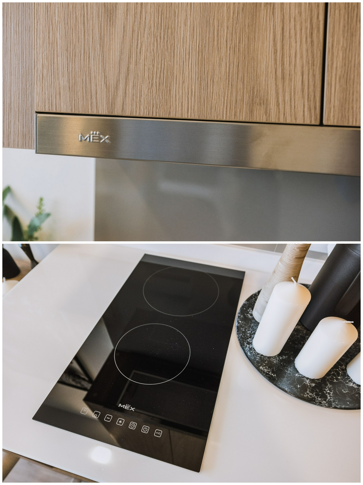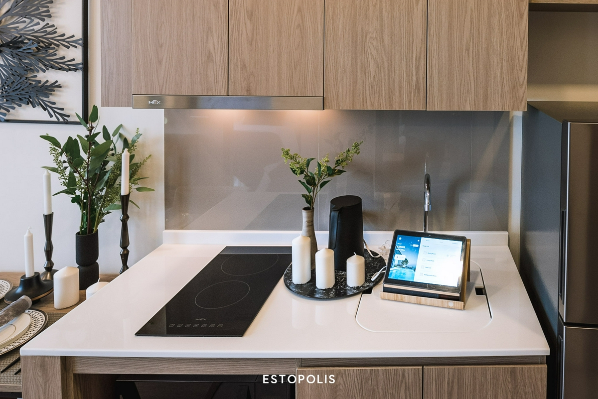 สำหรับอุปกรณ์ภายในครัวที่ทางโครงการ Centric Ratchayothin จัดเตรียมให้นั้น จะมีเตาไฟฟ้าขนาด 2 หัว กับเครื่องดูดควันระบายอากาศจากแบรนด์ Mex