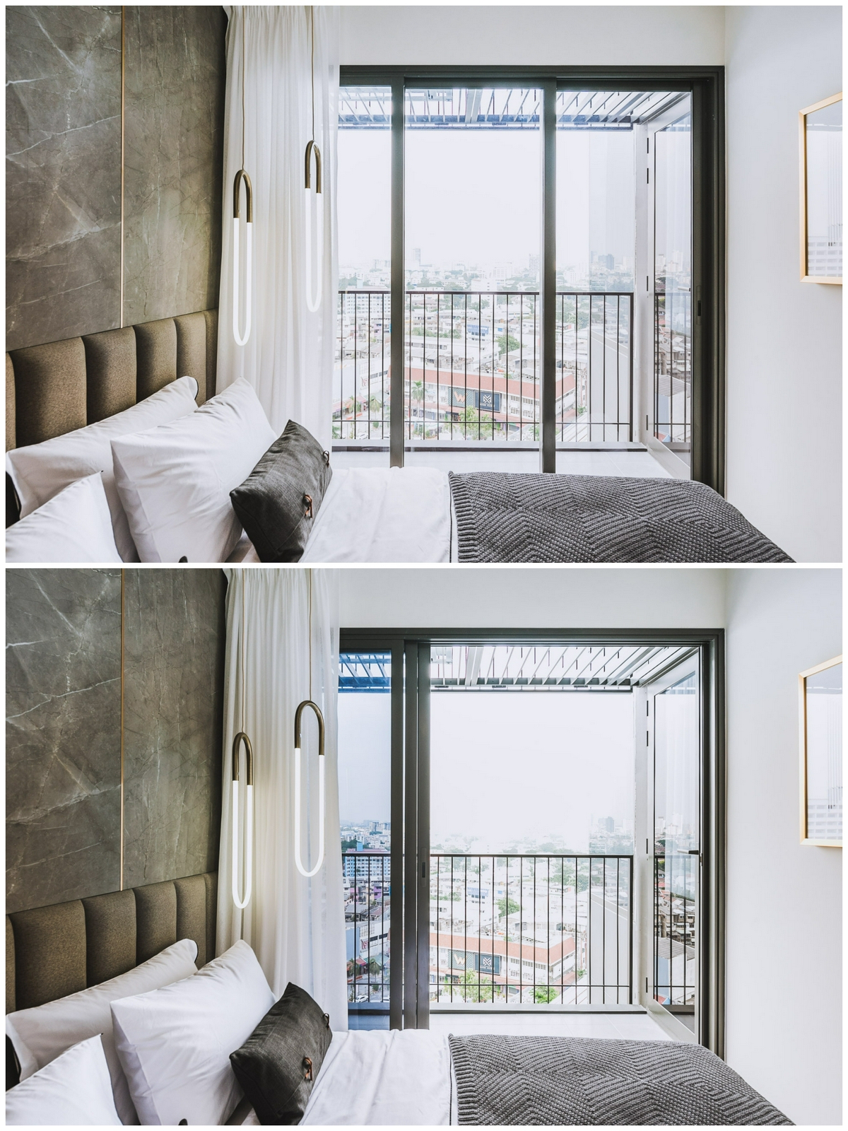 ภายในห้องจะเป็นพื้นที่วางเตียงขนาดใหญ่ ซึ่งจะอยู่ติดกับกระจกใสบานใหญ่แบบ Full Frame เพื่อให้คุณสามารถชม City View ได้แบบเต็มสายตา 180 องศา แถมยังเหลือพื้นที่รอบเตียงให้เดินเข้า-ออกได้สบาย ๆ แม้จะวางเตียงขนาดใหญ่ถึง 5 ฟุตแล้วก็ตาม