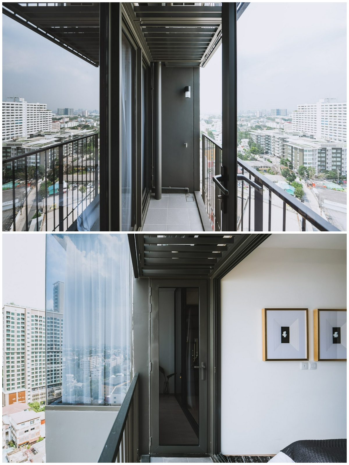 เชื่อมต่อทุก ๆ โมเมนต์ความสุขด้วยระเบียงห้อง ที่สามารถเลื่อนเปิดออกไปรับลมด้านนอกได้ตลอดเวลา และยังให้คุณสามารถ Take View สวย ๆ ผ่านประตูกระจกบานเลื่อน 3 ตอน ได้ทั้งยามกลางวัน และกลางคืน