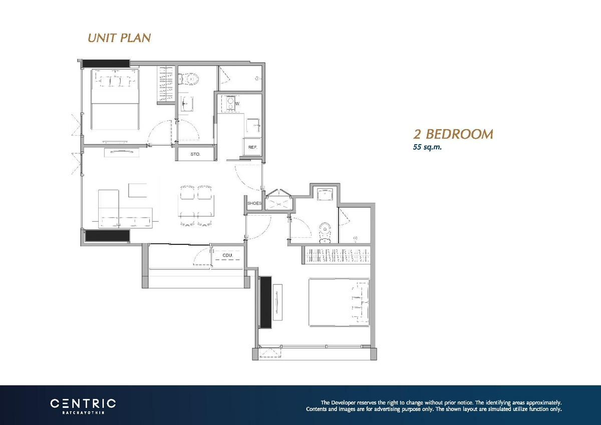 - 2 Bedrooms ขนาด 55 ตร.ม.