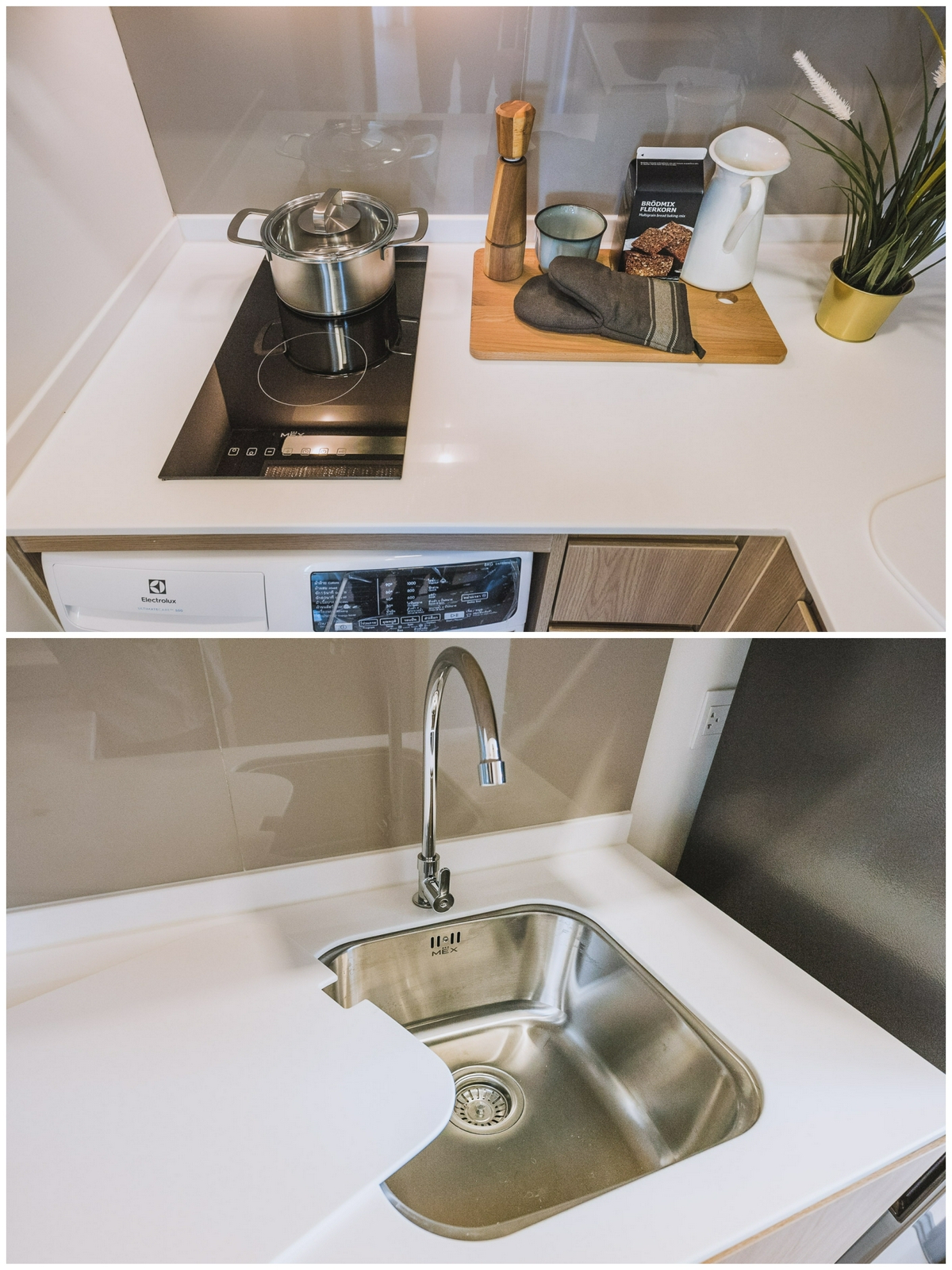 - ชุดครัวที่ได้ จะมีทั้งเตาไฟฟ้าขนาด 2 หัว, เครื่องดูดควัน, ซิงก์ล้างจาน และก็อกน้ำจากแบรนด์ Mex ทั้งหมด